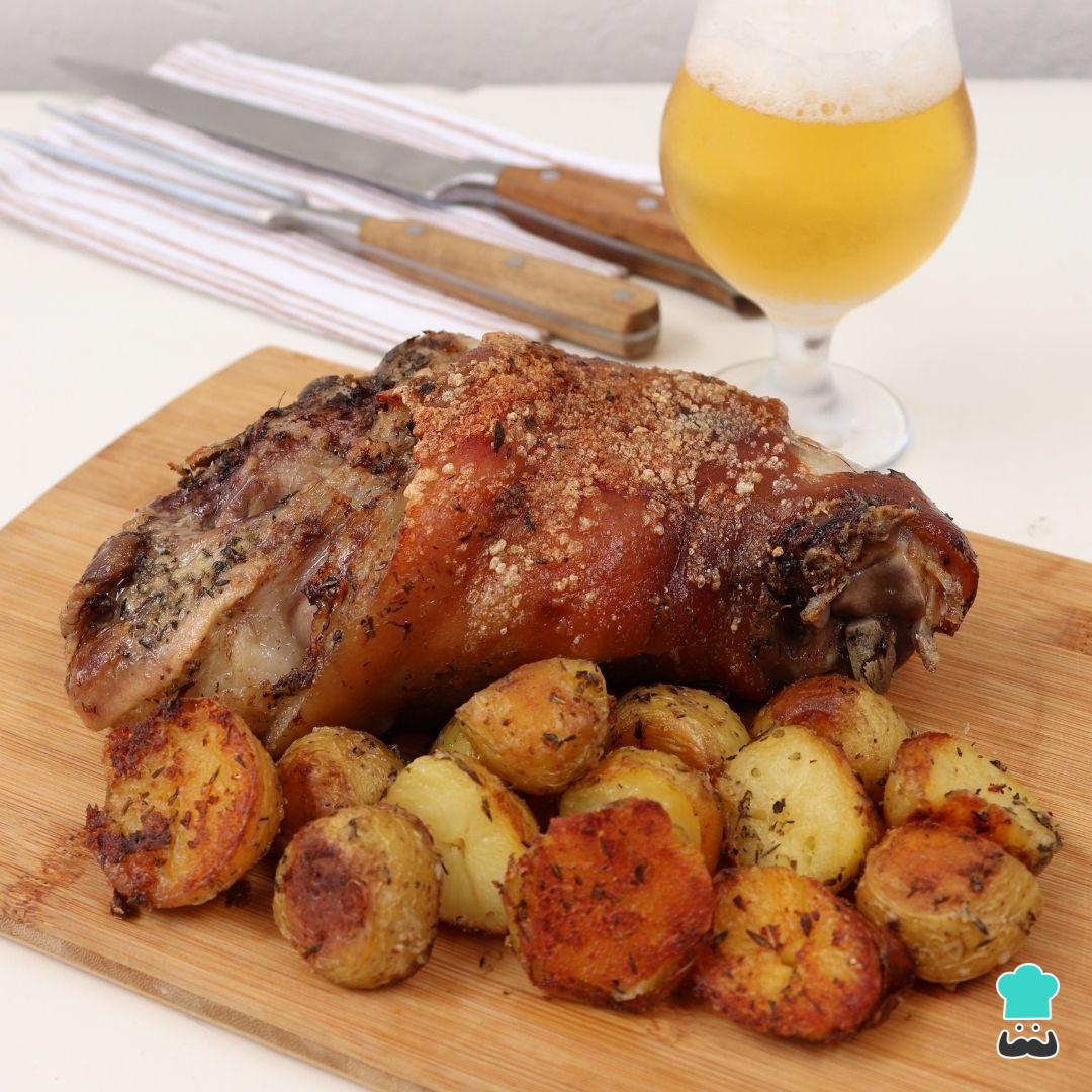 Agora é só abrir a cerveja e se deliciar com o seu joelho de porco à pururuca! E que tal para acompanhar batatas assadas com o mesmo tempero usado no joelho de porco? Fica uma delícia! Faça e bom apetite!