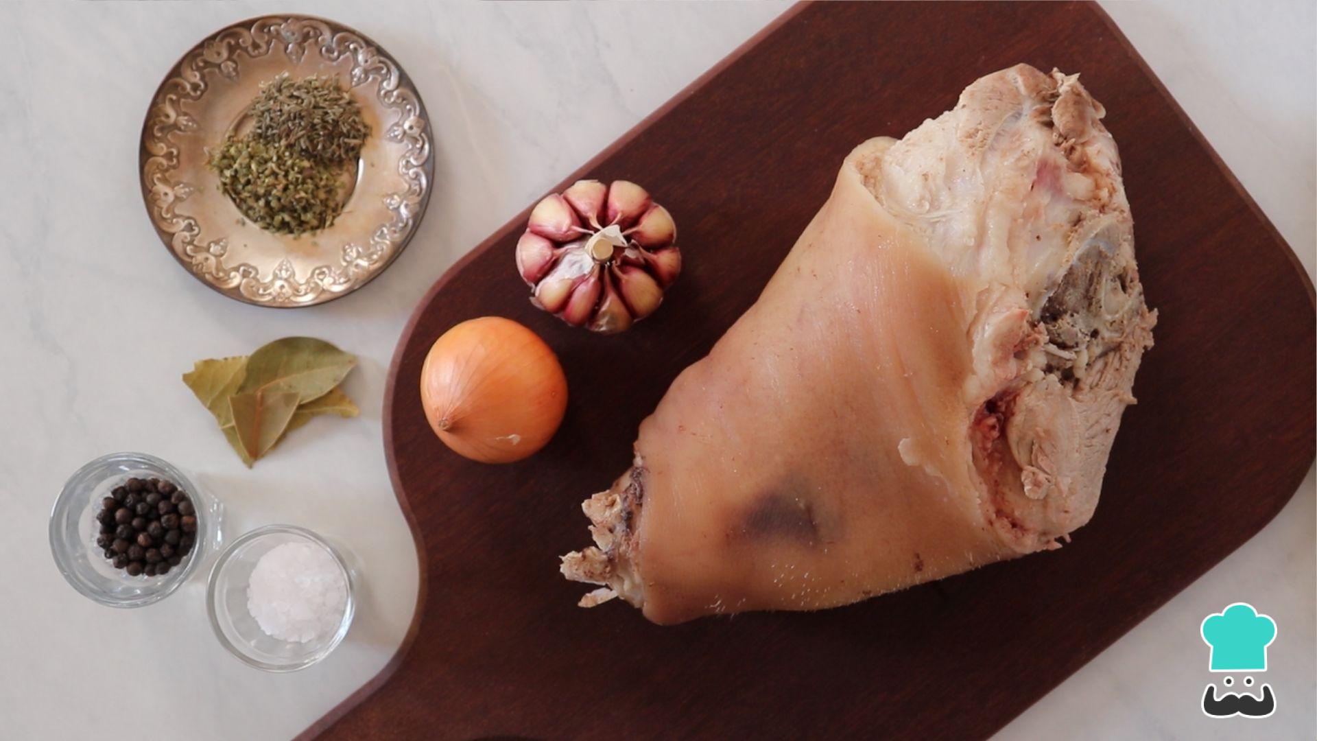 Comece separando os ingredientes. Lave bem o joelho de porco.