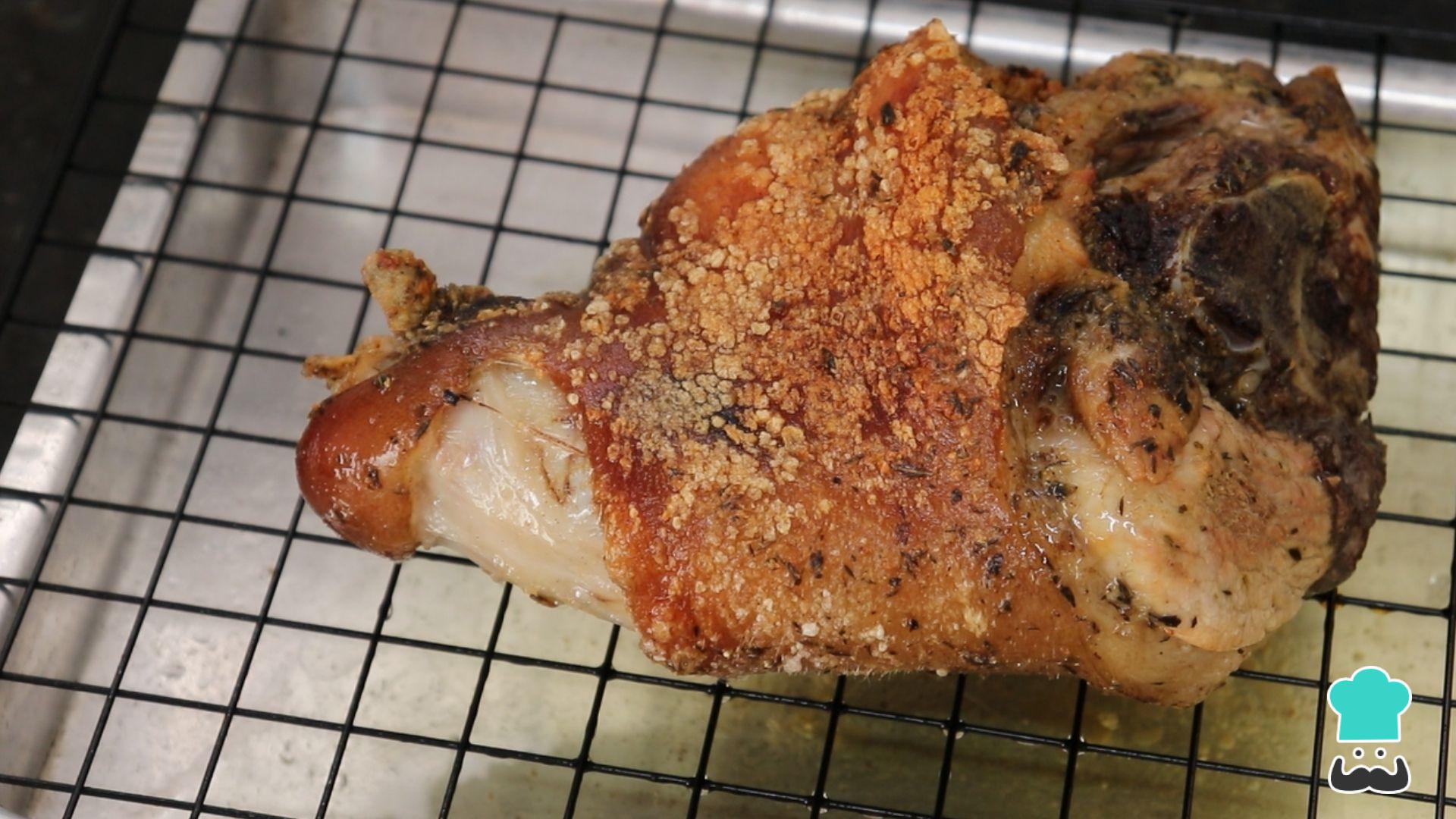 Suculento e crocante, esse joelho de porco tem ingredientes como orégano, tomilho e folhas de louro e fica marinando nesse tempero por 12 horas na geladeira. Tudo isso para garantir uma carne deliciosamente temperada! A nossa dica, além do planejamento, é o cuidado na hora de fazer a pururuca, que consiste em despejar óleo quente diretamente no joelho de porco para ele ficar com a pele bem crocante. Não é nada complicado mas é uma etapa que exige atenção para evitar acidentes.