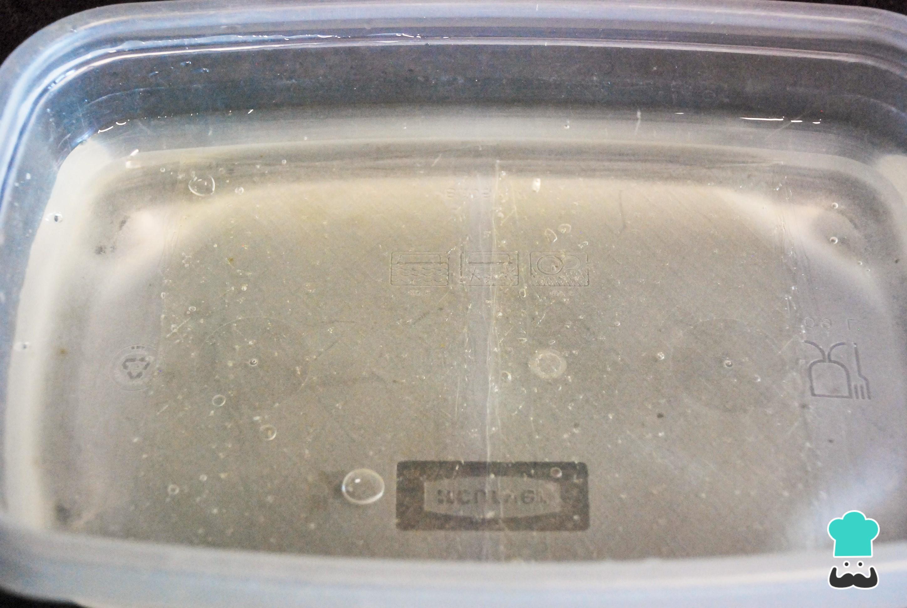 Hidrate as folhas de gelatina em um pouco de água para cerca de 5 minutos. Coloque-as em um recipiente e deixe de molho até incharem.