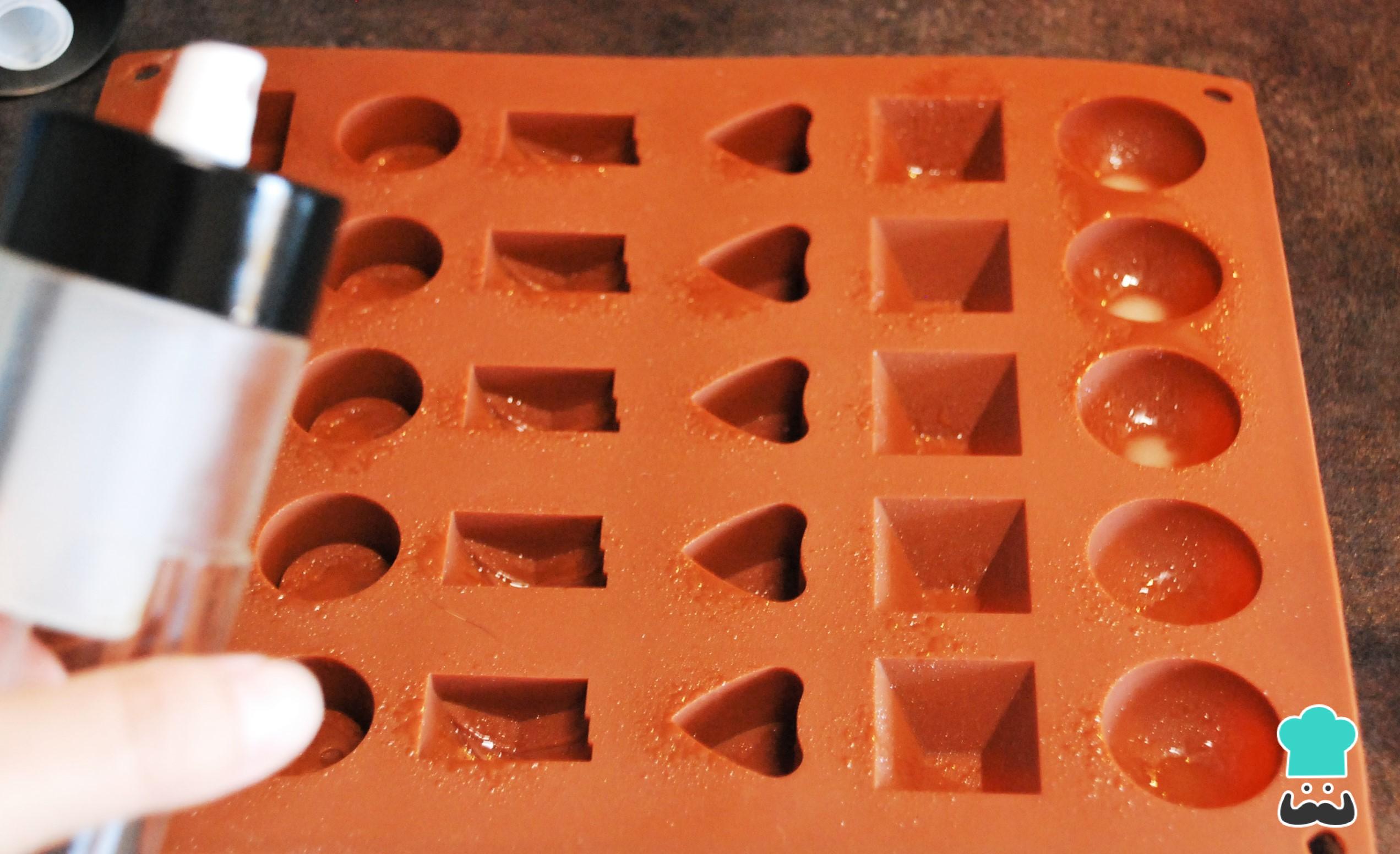 Separadamente, preparar o molde onde você fará a jujuba caseira. Para fazer isso, unte cada buraco com óleo de cozinha, pode usar um guardanapo ou um spray de óleo.