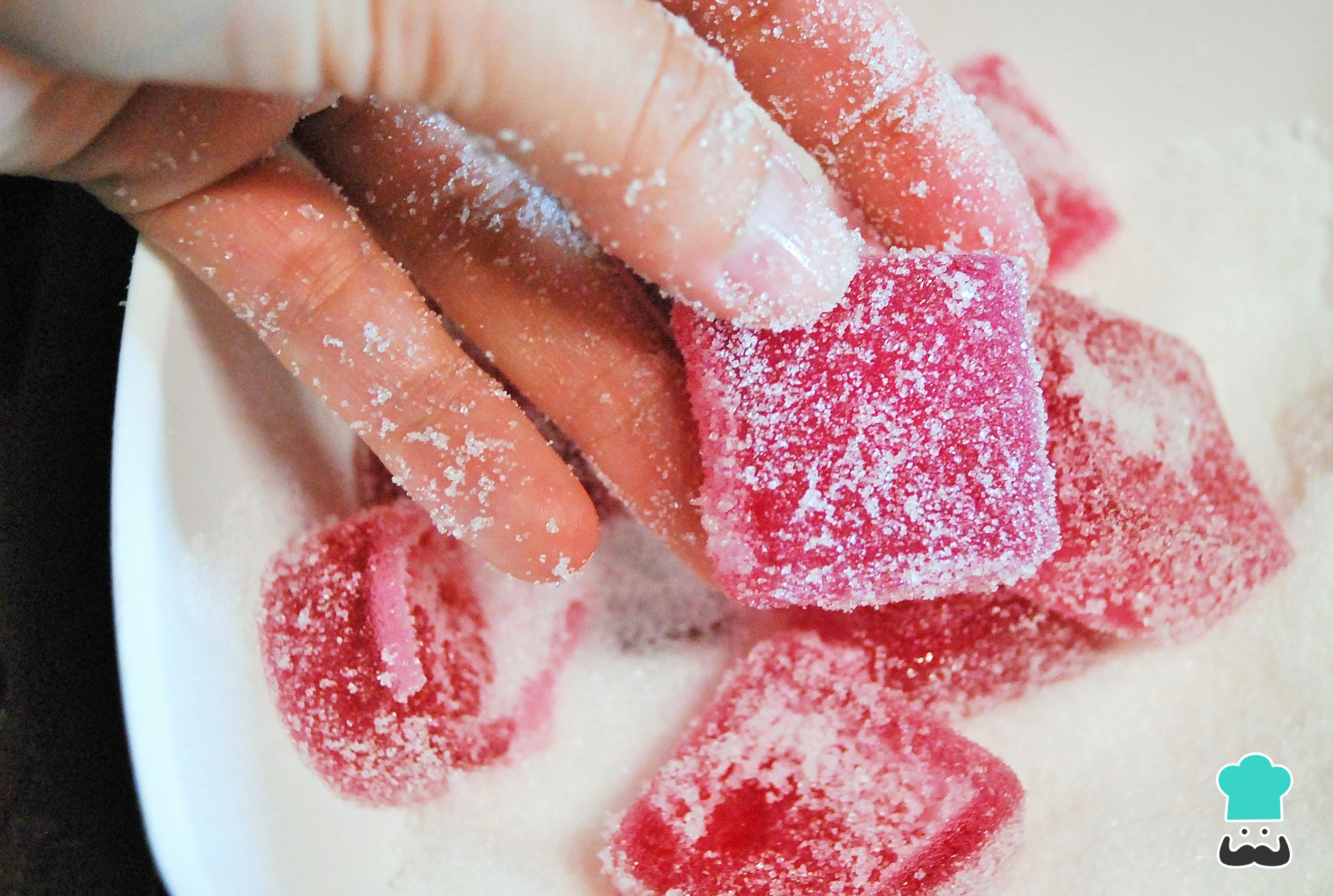Neste ponto já pode comer a jujuba caseira, mas também pode cobri-las com açúcar. Para isso, coloque bastante açúcar em uma tigela e passe osdoces até que fiquem completamente cobertos.