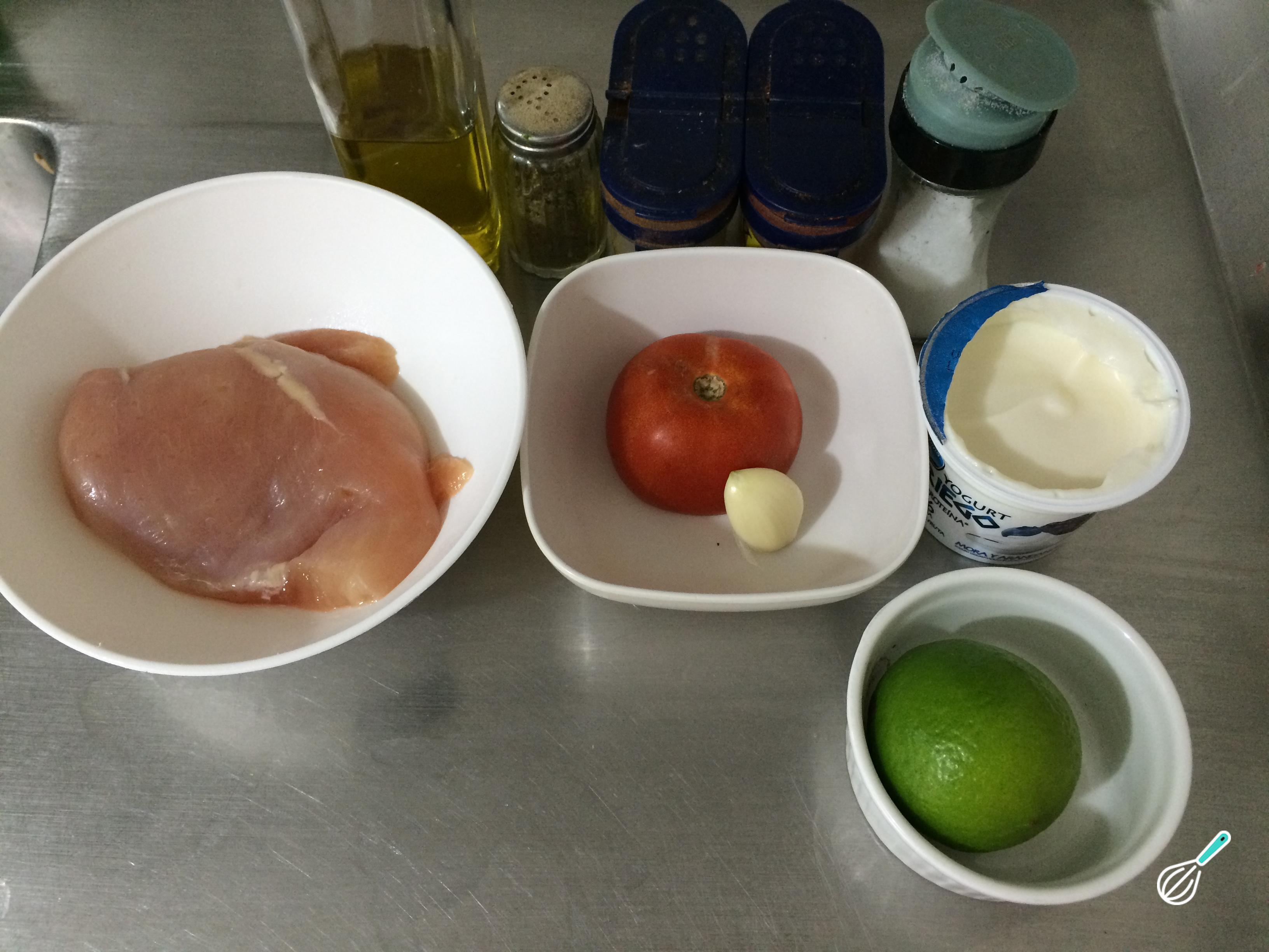 Comece por reunir os ingredientes desta receita de peito de frango.