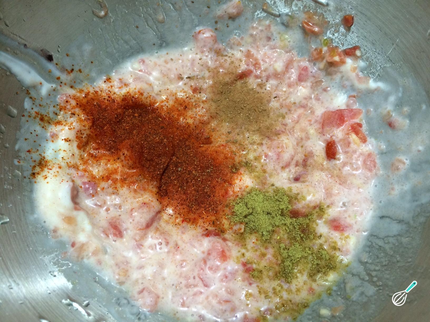Por último, acrescente as especiarias (a páprica, os cominhos e a canela) e misture tudo.