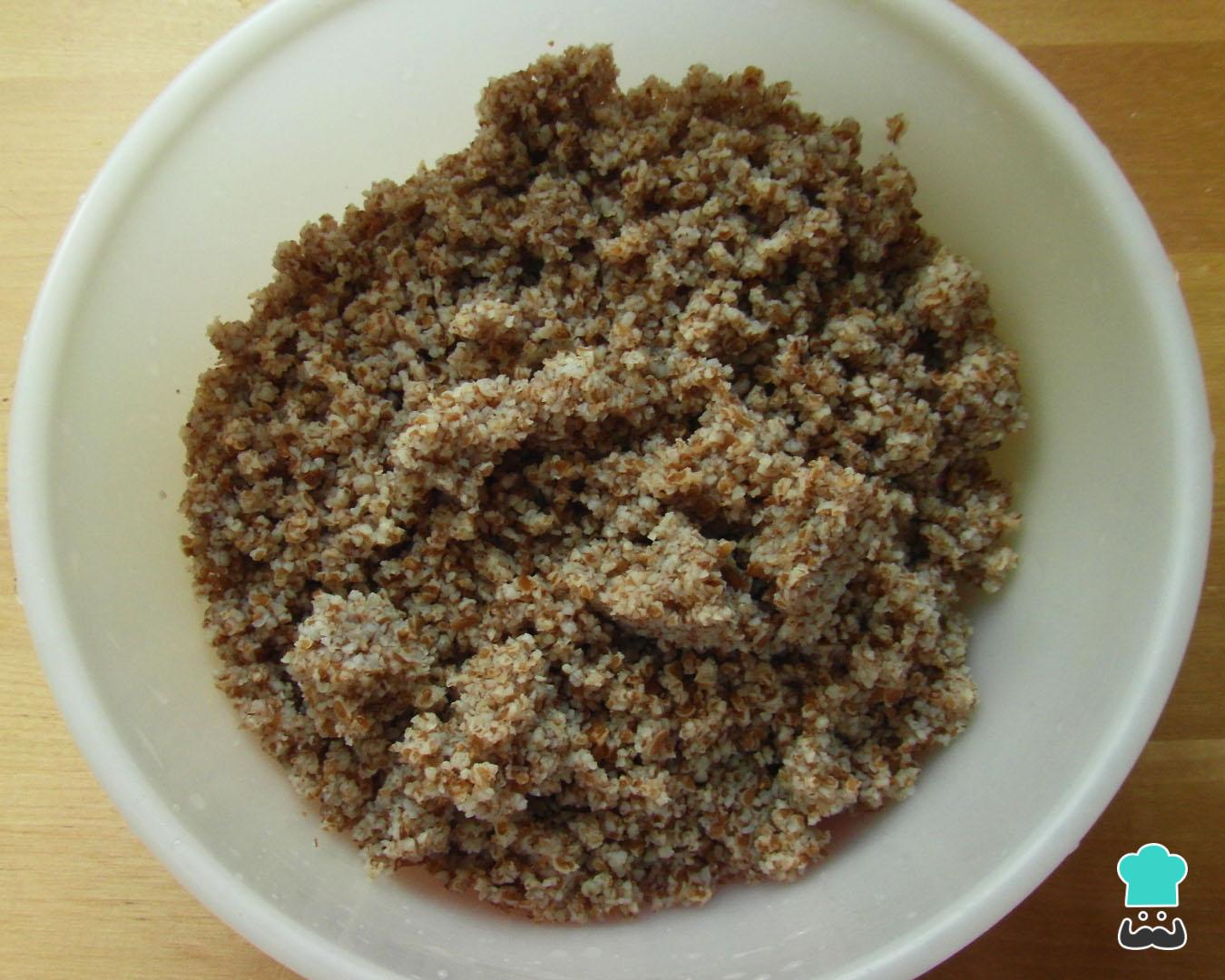 Primeiramente deixe o trigo hidratar em água quente durante cerca de 2 horas - isso é necessário para que fique macio e mais fácil de cozinhar. Depois escorra muito bem e coloque numa bacia.