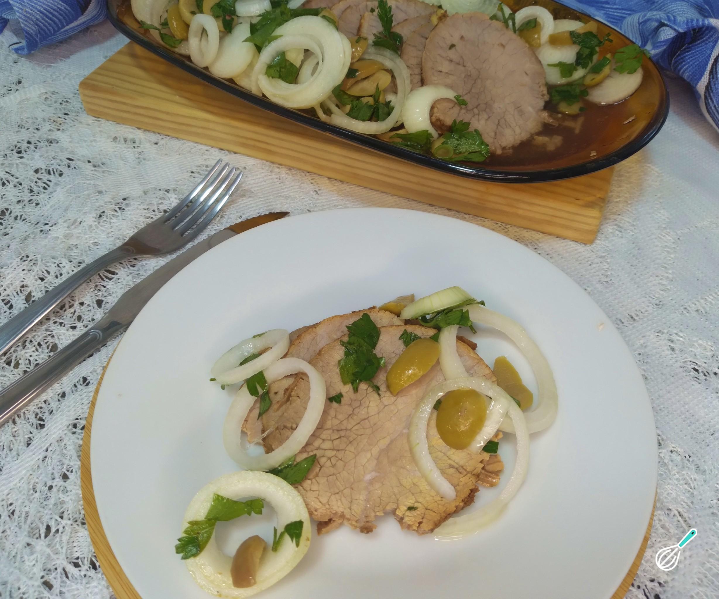 Já ouviu falar em lagarto gelado ou salada de lagarto? São fatias finas de lagarto cozido, geladas com um molho de azeitonas e cebola super saboroso. Perfeito para ser servido com uma salada de legumes ou folhas. Também serve para ser servido no pão como sanduíche. Tem um sabor e uma textura muito agradáveis.