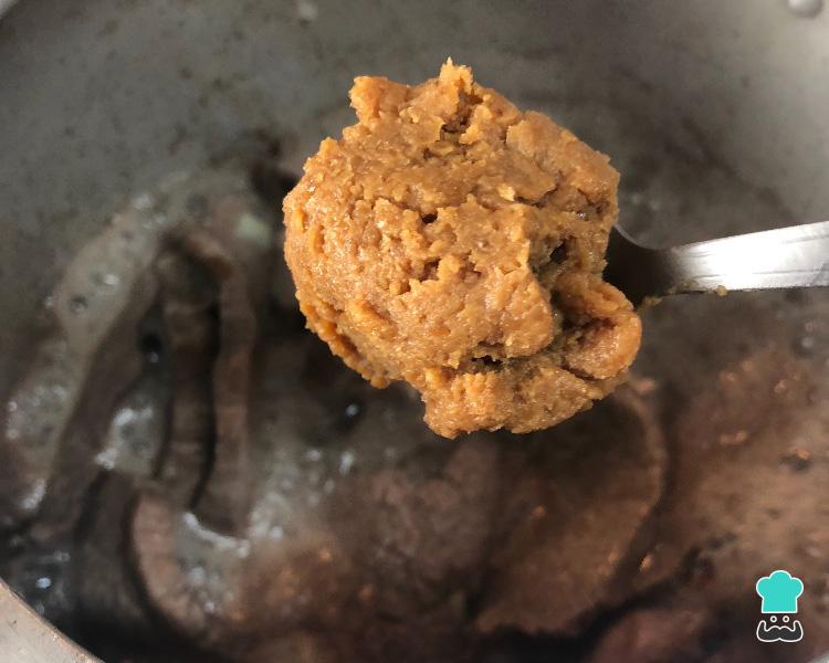 Na sequência junte também o missô, que é uma massa temperada japonesa, e também o molho inglês ou shoyu.
