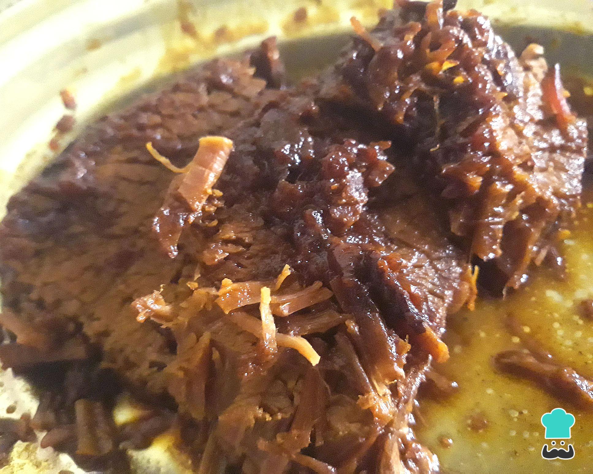 Coloque a carne, a cebola e o molho da marinada na panela de pressão, cubra com água filtrada e leve ao fogo por 2 horas. Após esse tempo abra a panela e veja se carne está macia - ela deverá estar ao ponto 'quase desmanchando' e o molho bem reduzido.