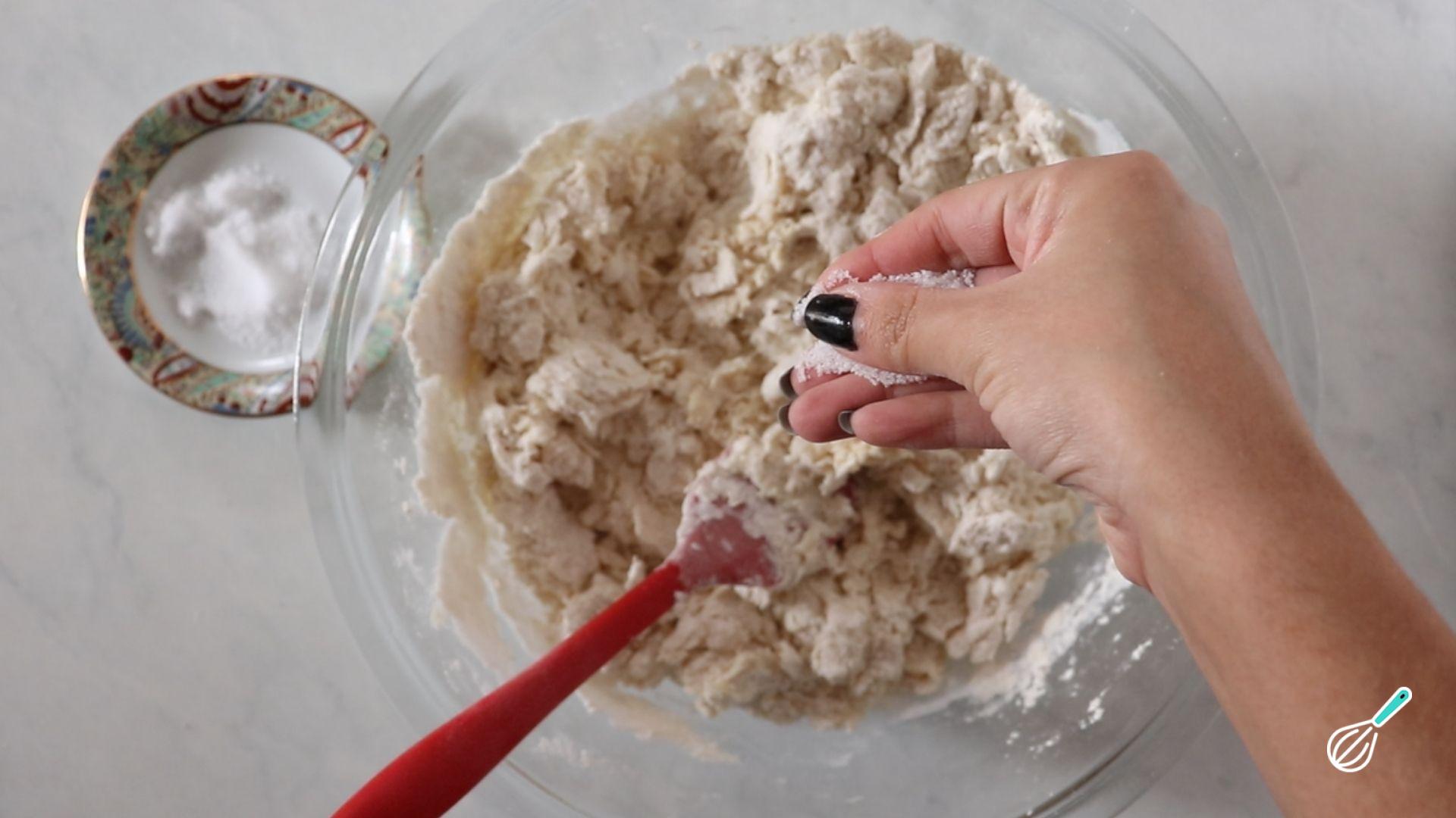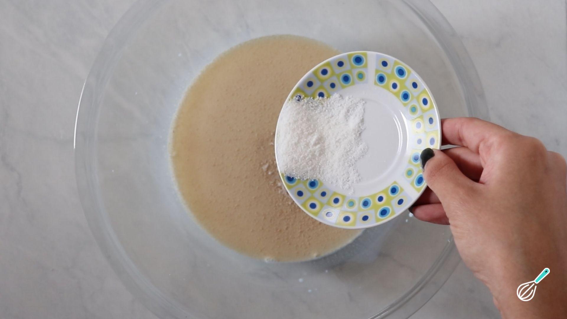 Acrescente o sal aos poucos, mexendo bem até a farinha absorver todo o líquido.