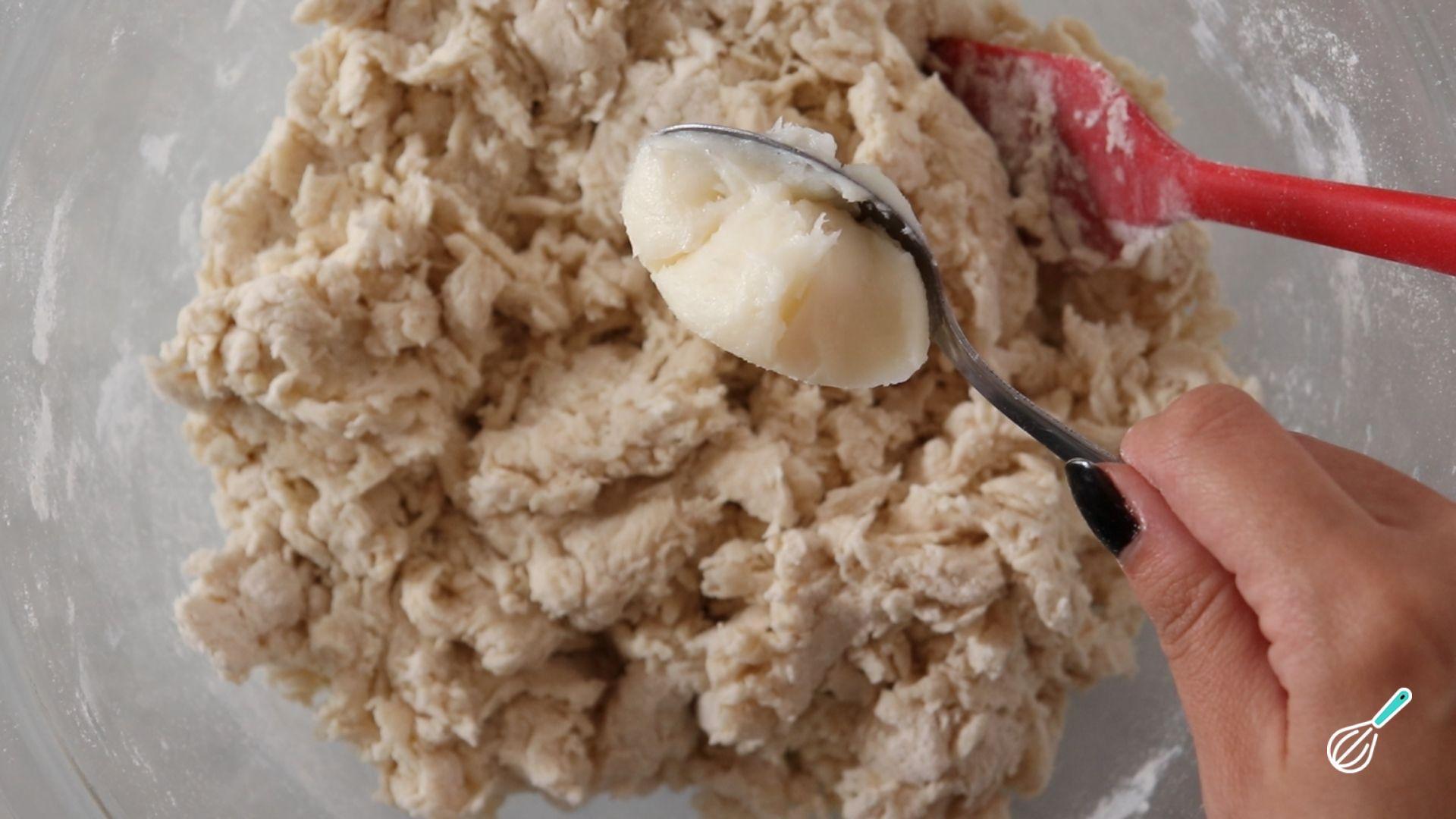 Agora é a vez da banha de porco. Adicione aos poucos e misture bem a cada adição para incorporar.