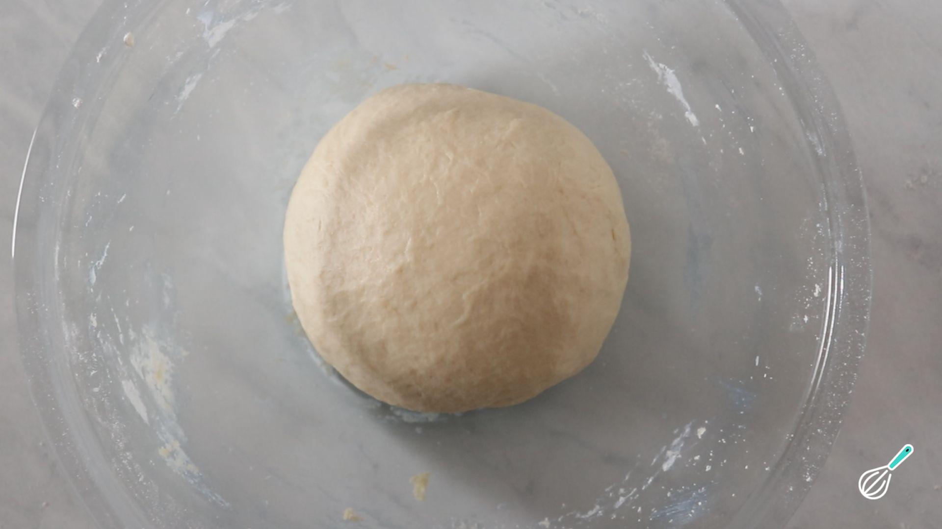 Enrole a massa numa bola e volte para a mesma tigela. Cubra com um pano ou filme plástico e deixe descansar por 1h15.
