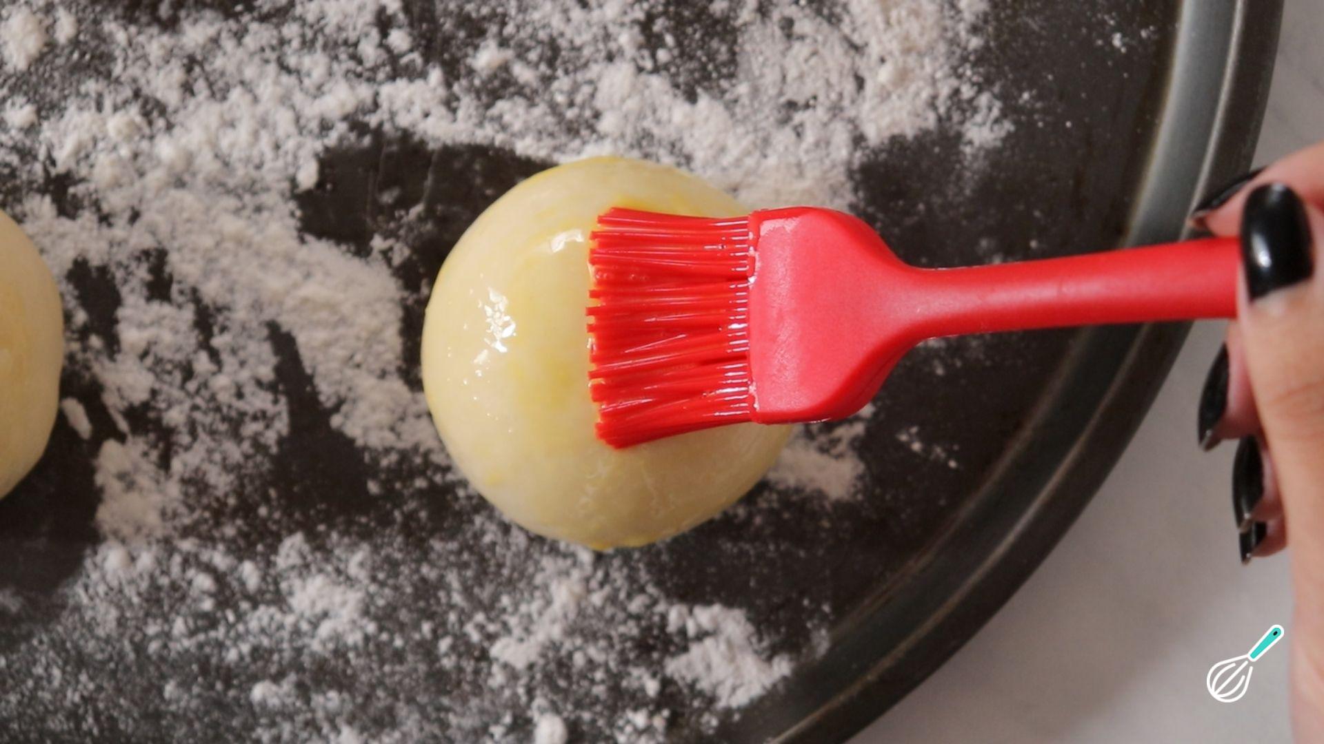 Passado os 20 minutos é hora de quebrar o ovo, bater com um garfo e passar por cima dos pãezinhos. Isso vai dar um brilho na superfície do seu pão de hambúrguer! Cubra e deixe descansar mais uma vez por 20 minutos - esse é o último descanso da massa.