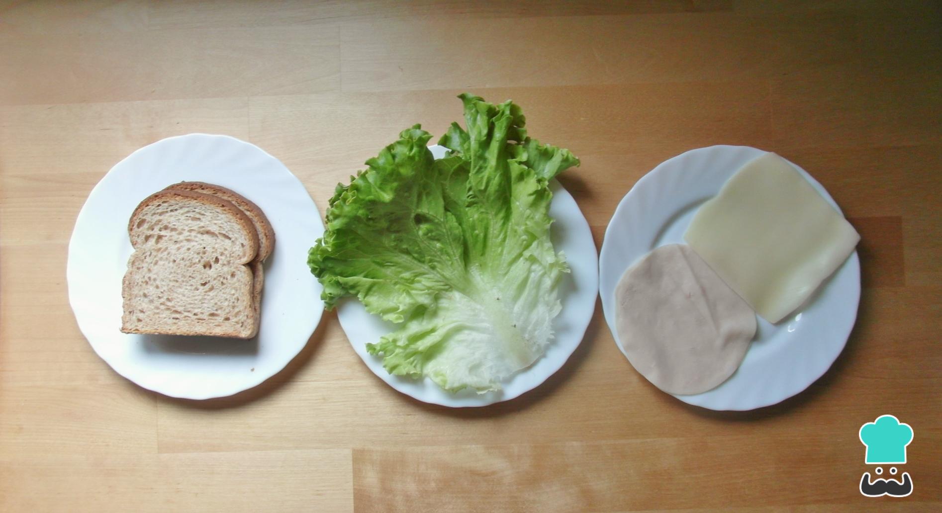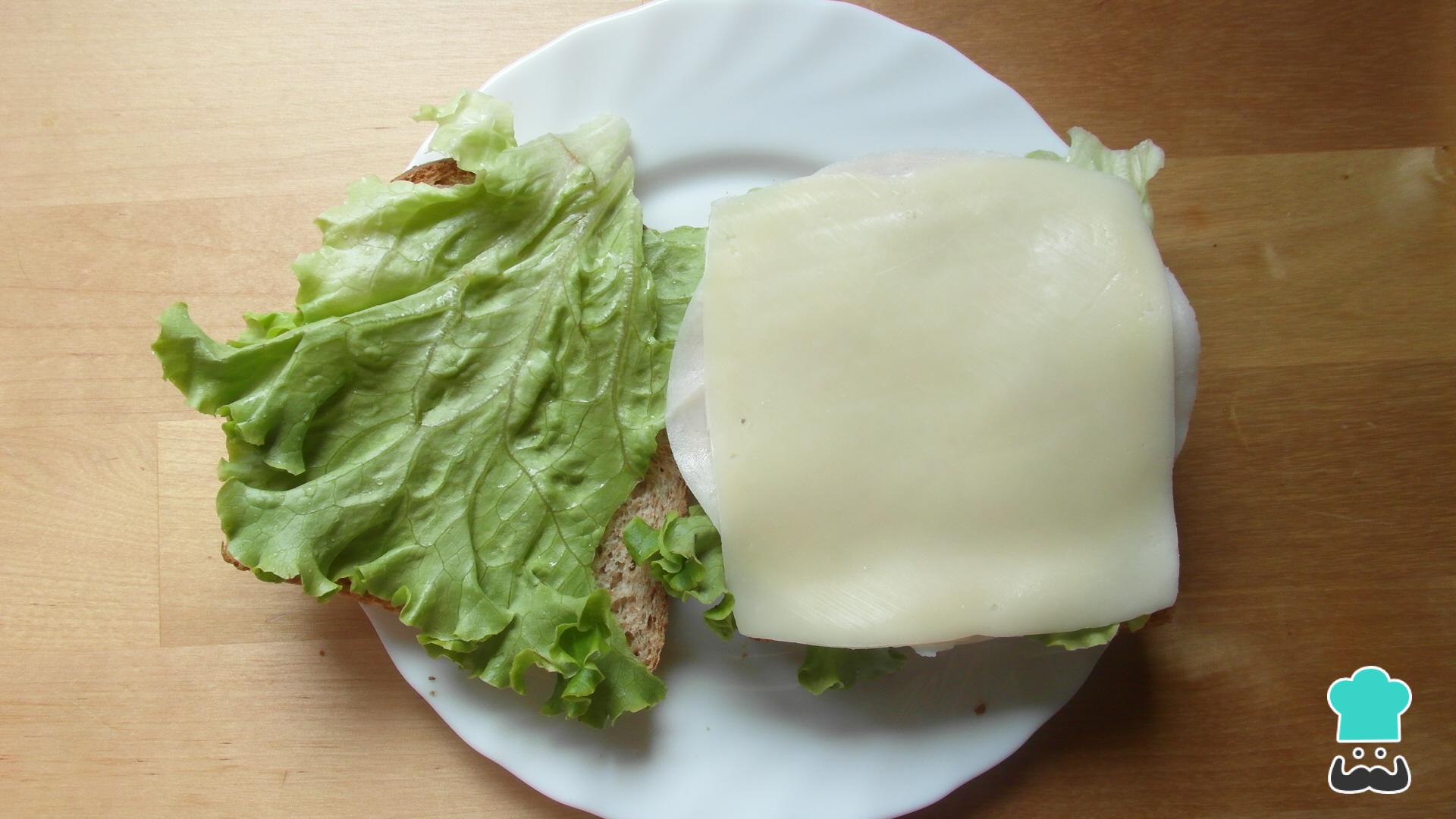 Acrescente o presunto e o queijo. Neste caso não usaremos molhos, para que este seja um sanduíche saudável.