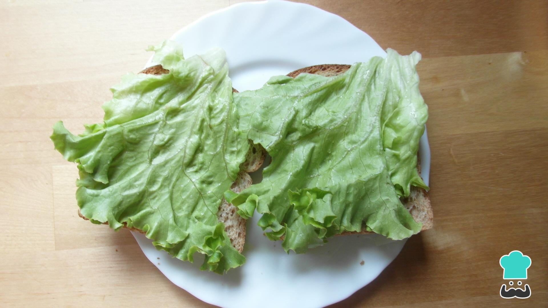 Coloque a alface sobre as duas fatias de pão desse lanche natural simples.