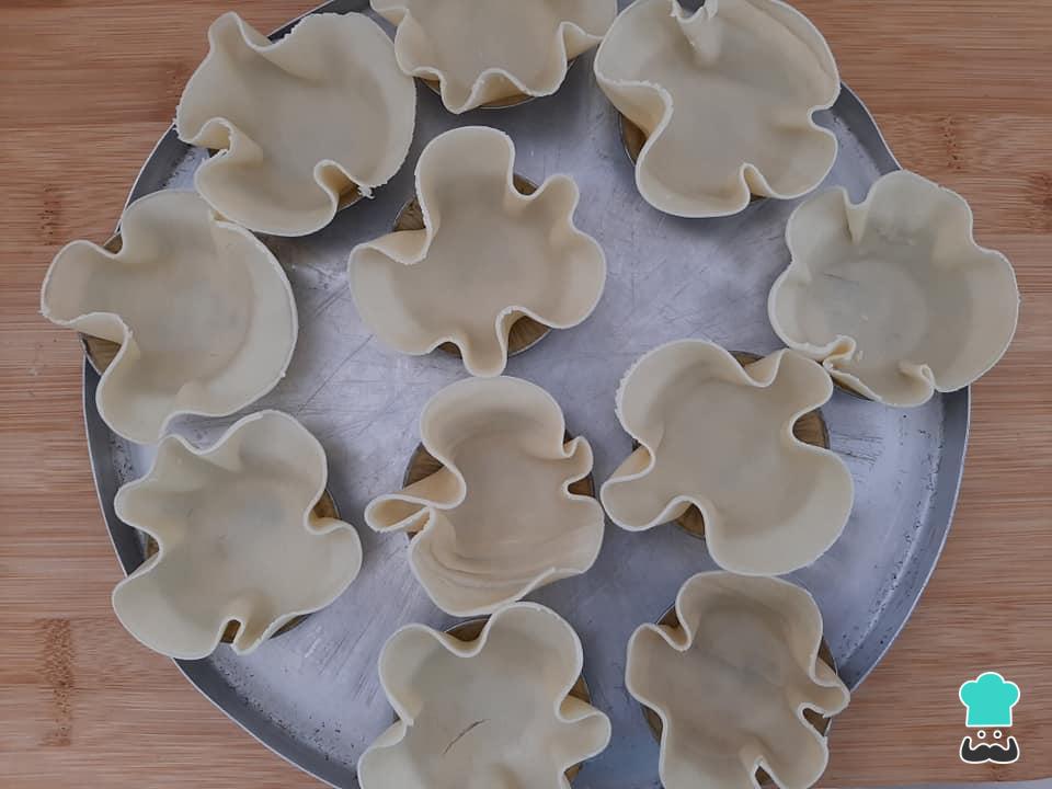 Em forminhas de empadas ou de cupcakes, acomode os discos de massa de pastel, sem necessidade de untá-las.