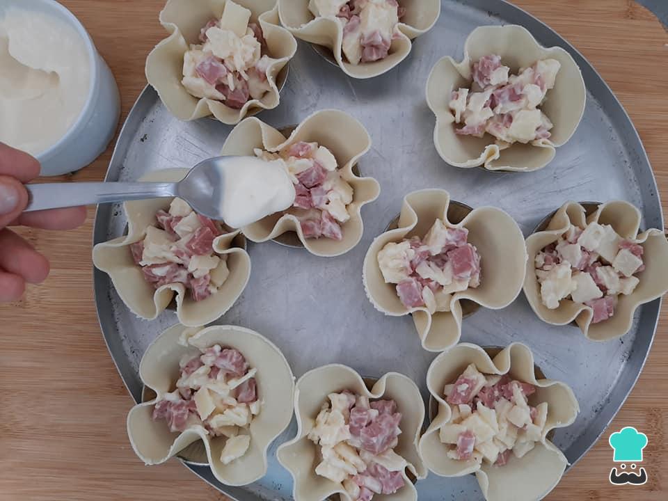 Cubra a superfície das cestinhas com mais requeijão cremoso.