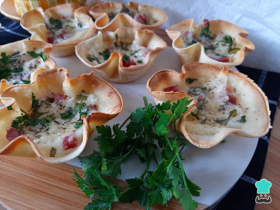 Seu lanche prático com massa de pastel está pronto para ser servido! Aguarde por muitos elogios, pois essas cestinhas com frios ficam irresistíveis e muito saborosas!