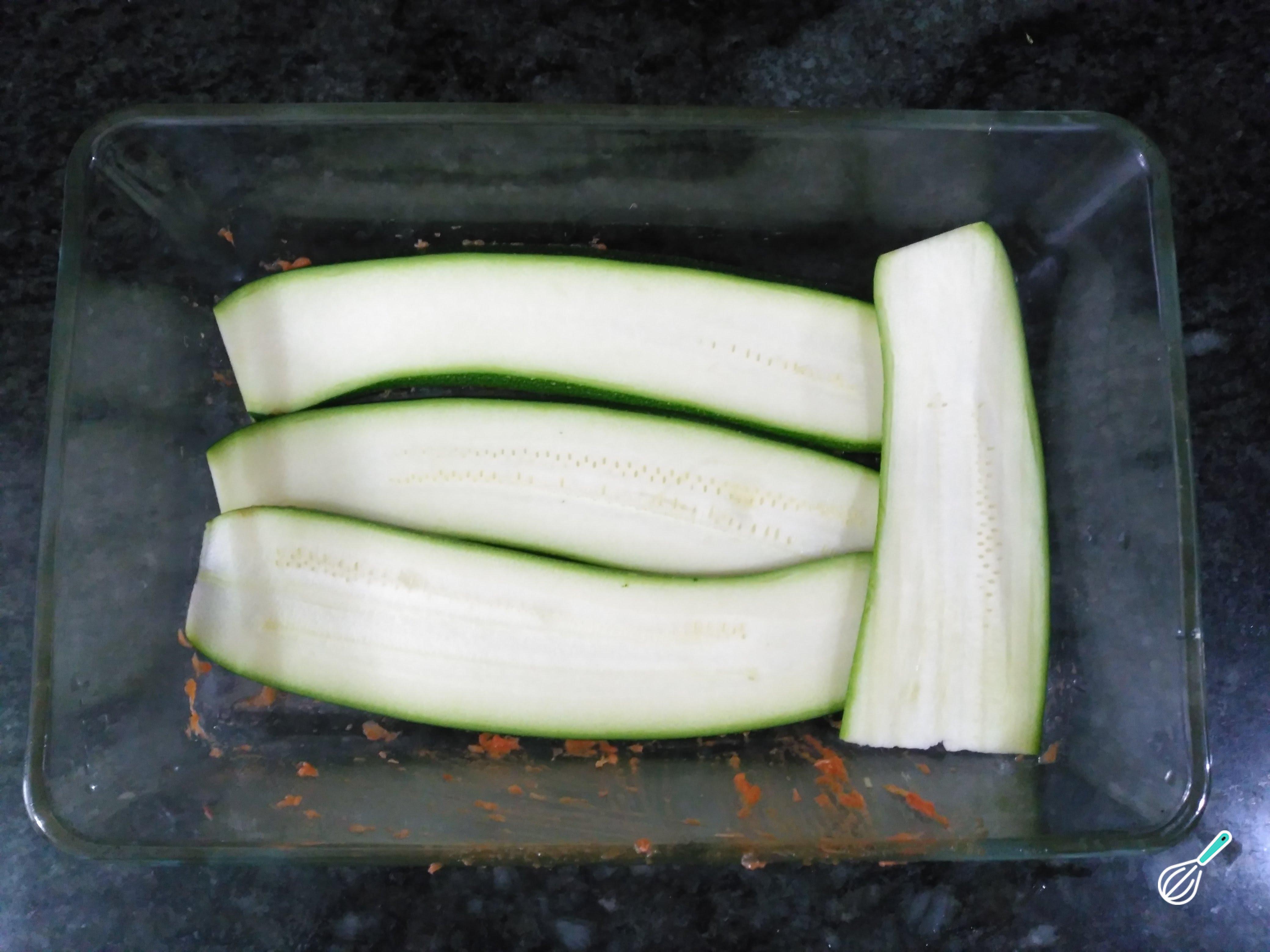 Este deverá ser o resultado da abobrinha cortada em fatias. Tempere com sal e reserve.