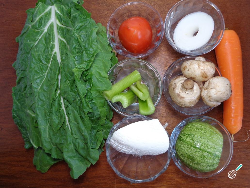 Na foto abaixo você pode ver os ingredientes necessários para a preparação da lasanha de acelga com queijo.