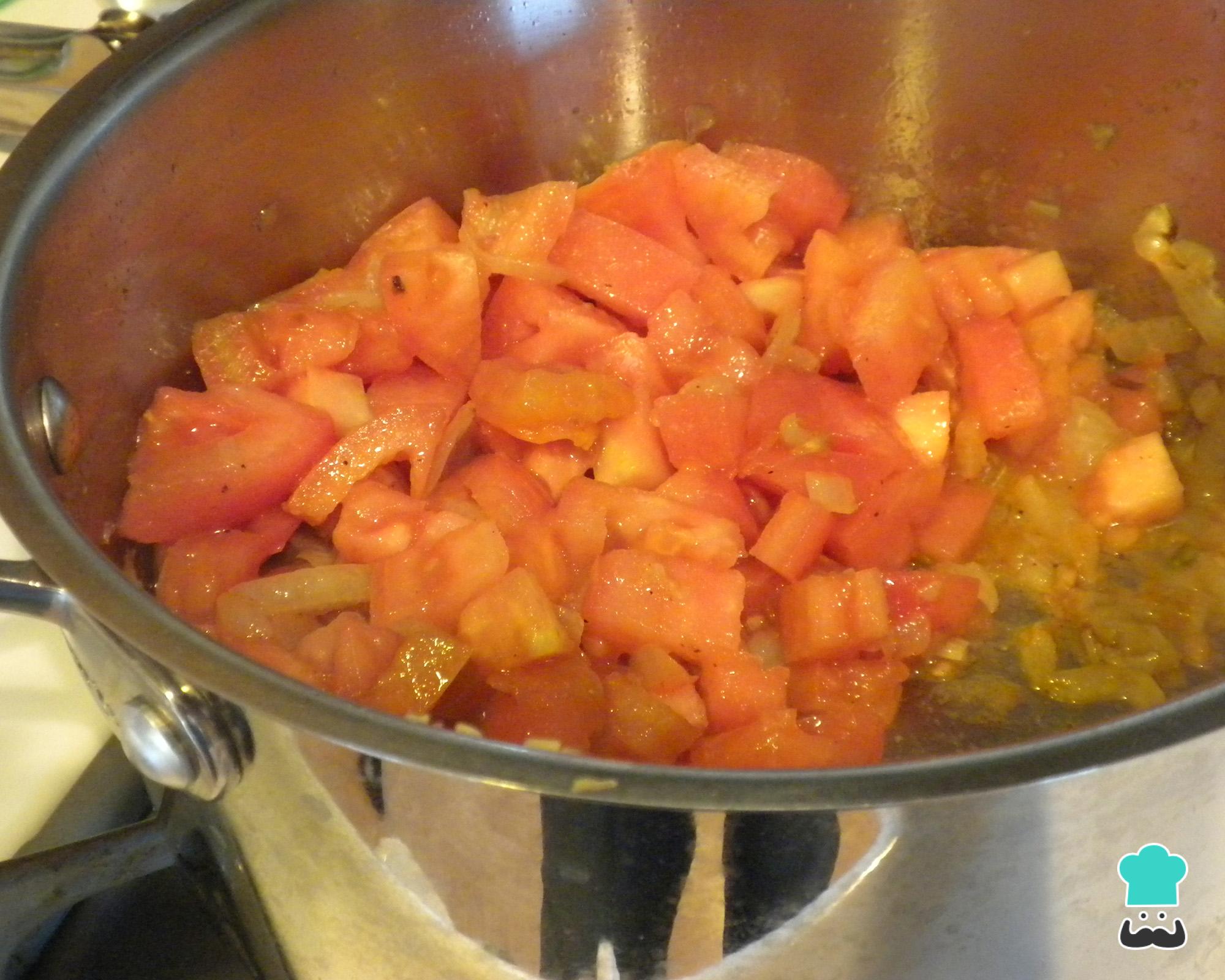 Enquanto isso pique os tomates em pedacinhos e pique a cebola também. Refogue o tomate e a cebola numa panela com um fio de azeite até os tomates murcharem. Tempere com sal, pimenta do reino e salsinha e adicione o vinagre balsâmico, para um gostinho extra. Misture e desligue o fogo.