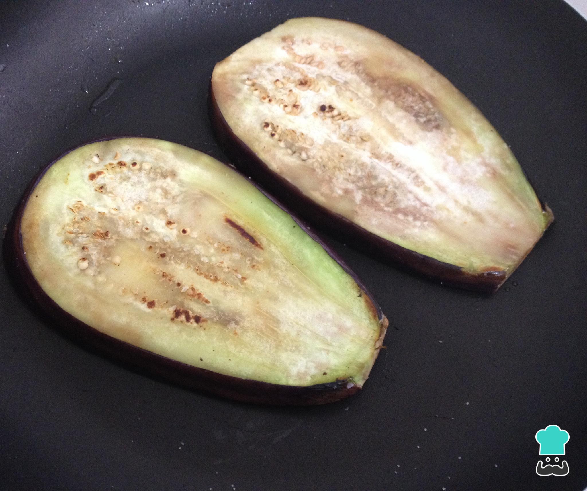 Corte as berinjelas longitudinalmente em fatias de 1 cm. Tempere com sal e leve a dourar em uma frigideira em fogo alto, para evitar o gosto amargo. Retire do fogo e reserve.