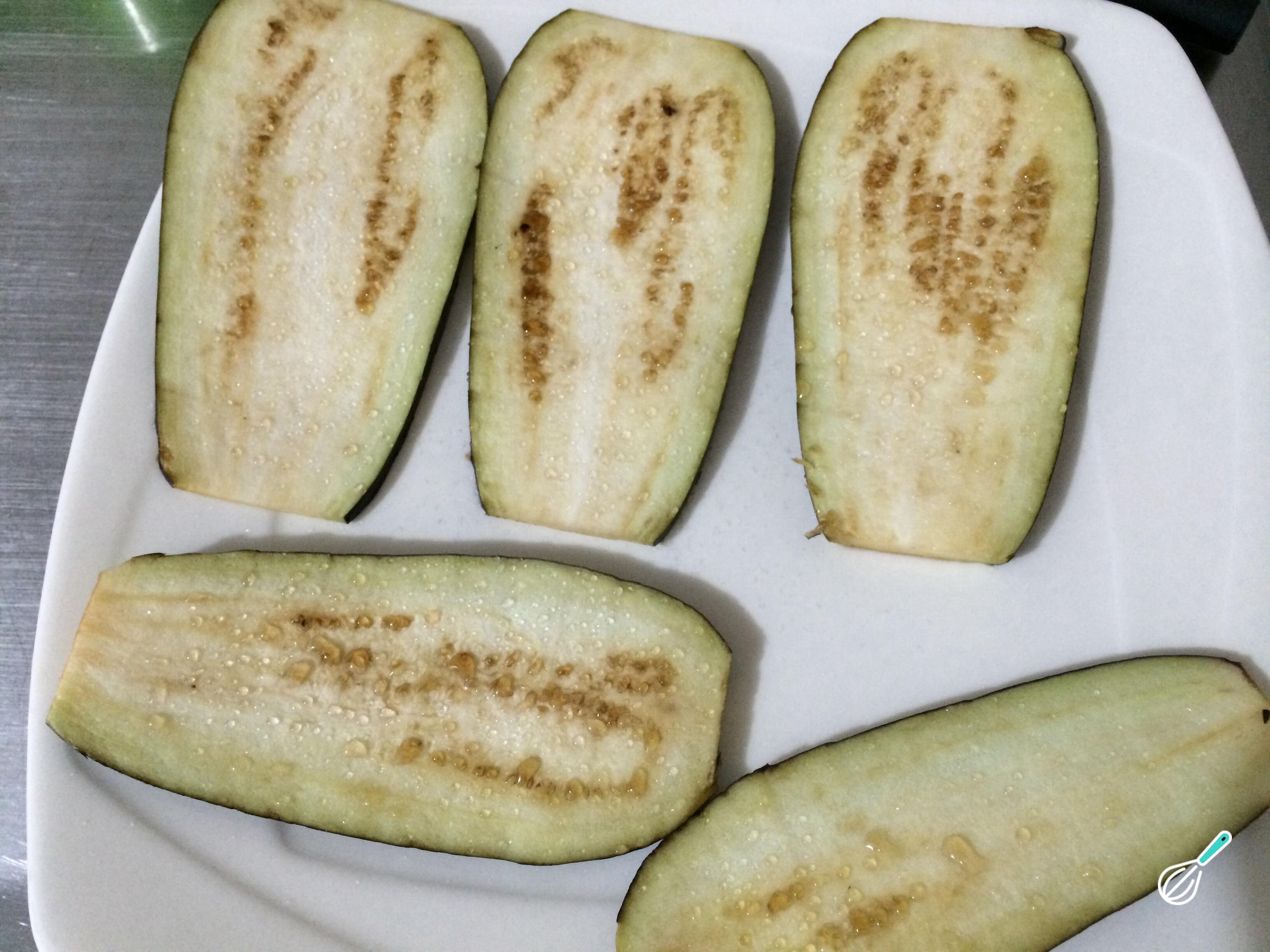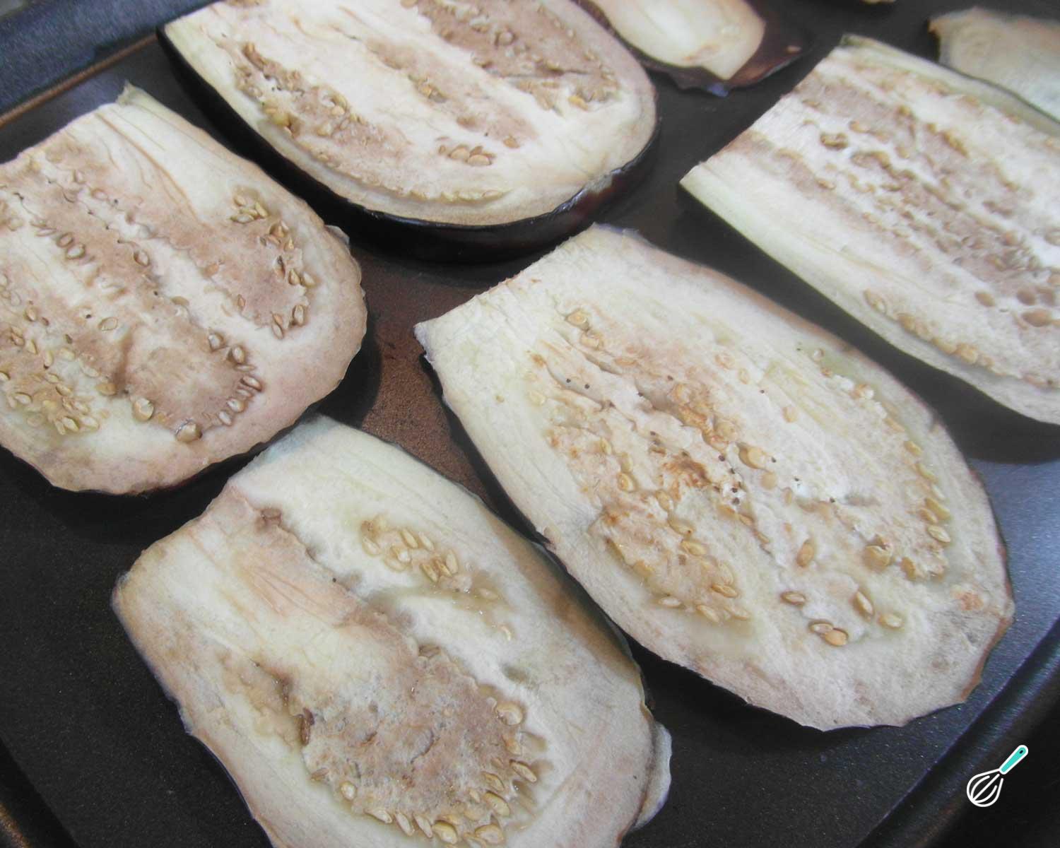 Dica: Evite sobrepor a berinjela para que cozinhe por igual.
