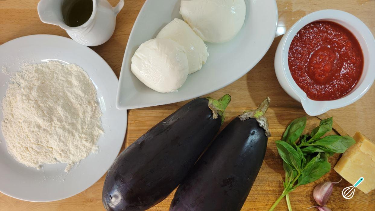 Separe os ingredientes para fazer sua lasanha de berinjela na frigideira.