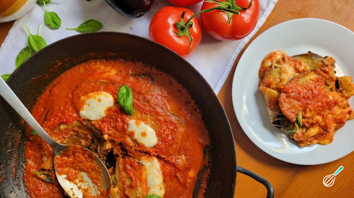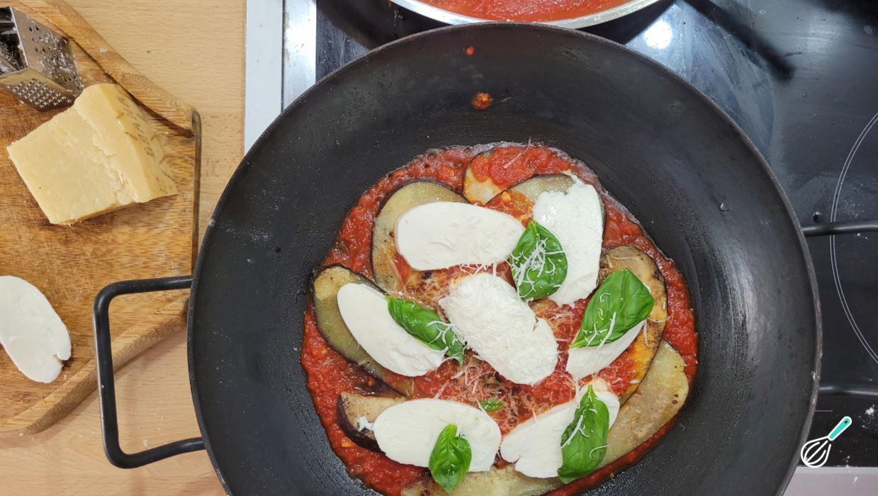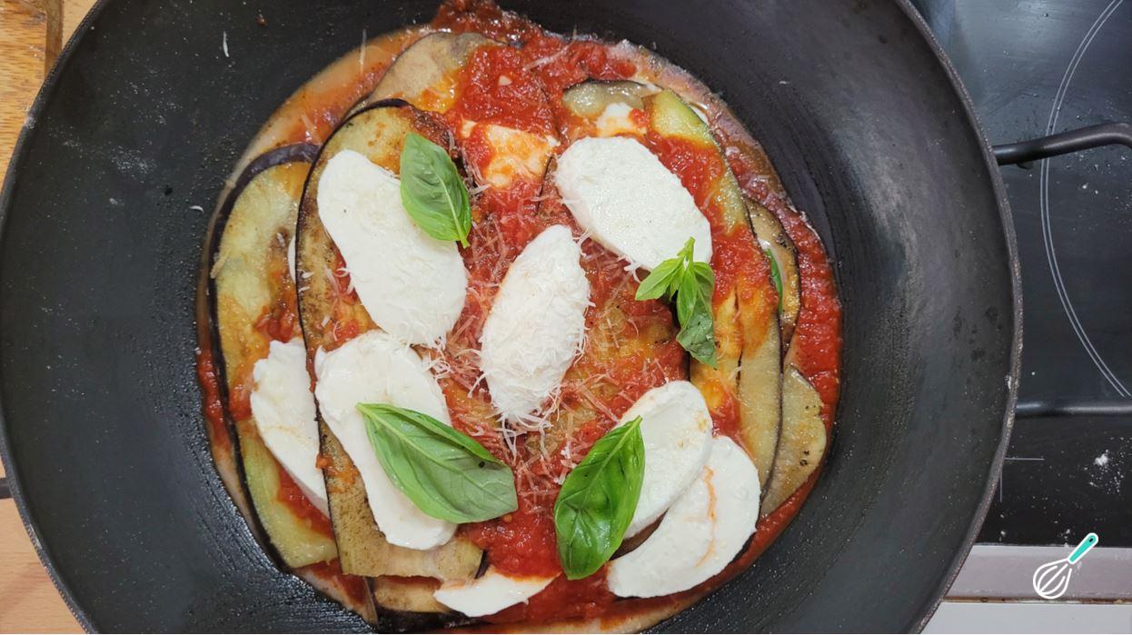 Essa lasanha de berinjela na frigideira é uma opção mais leve de lasanha em que a massa é substituída pela lasanha. Inspirada em uma berinjela siciliana, intercala camadas de um molho de tomate bem simples e prático com berinjelas grelhadas, muçarela e manjericão para um toque fresco. E o melhor é que é feita na frigideira, prática para quem não tem um forno ou quer economizar.