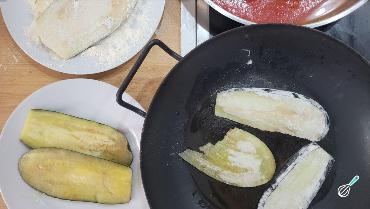 Se a frigideira estiver muito suja depois de grelhar as berinjelas, passe um papel toalha para retirar o excesso e não interferir no gosto da lasanha.