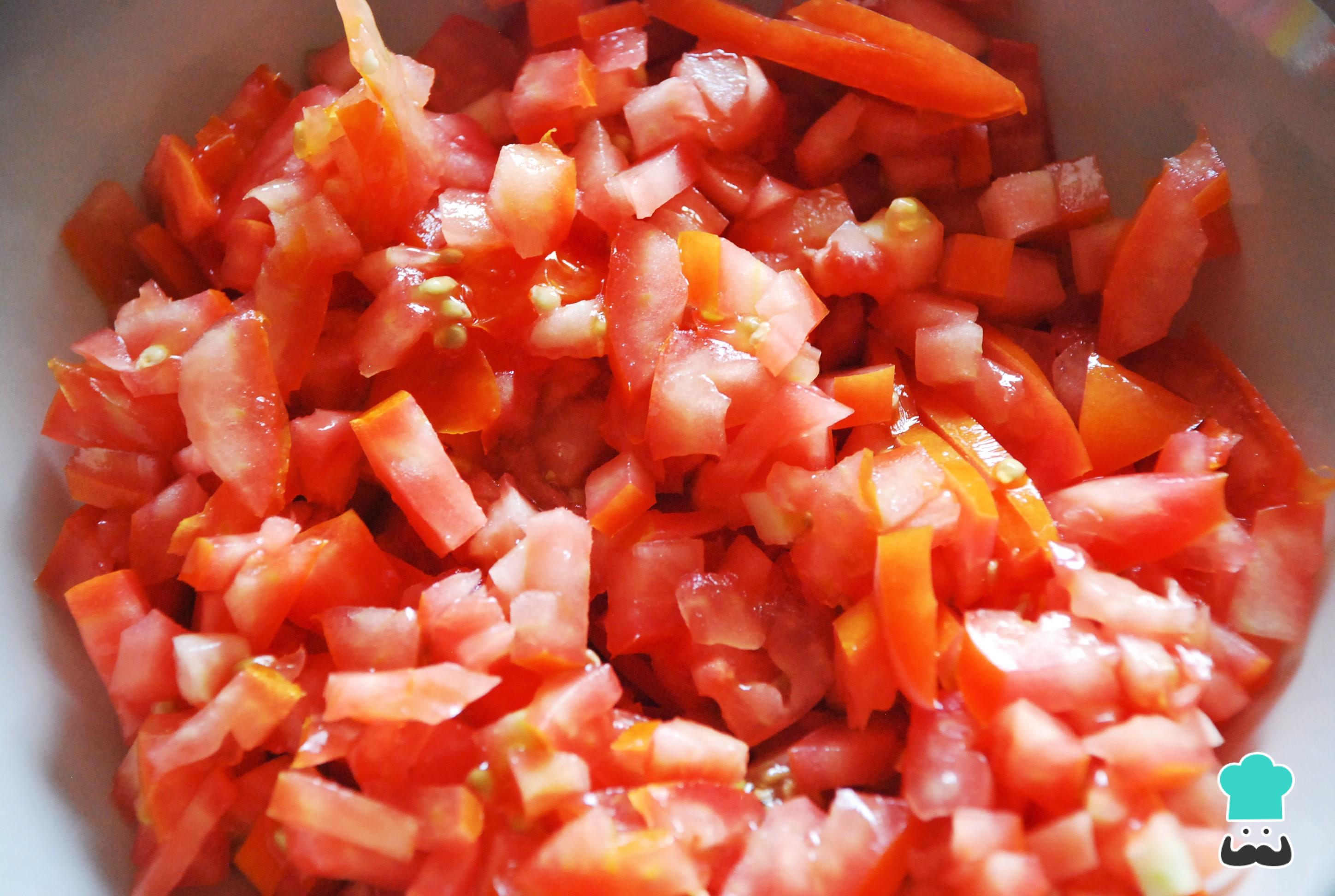 Em seguida você precisa fazer o molho de tomate, que irá tornar essa receita ainda mais saborosa! Comece por cortar os tomates em pedacinhos, de preferência sem as sementes.
