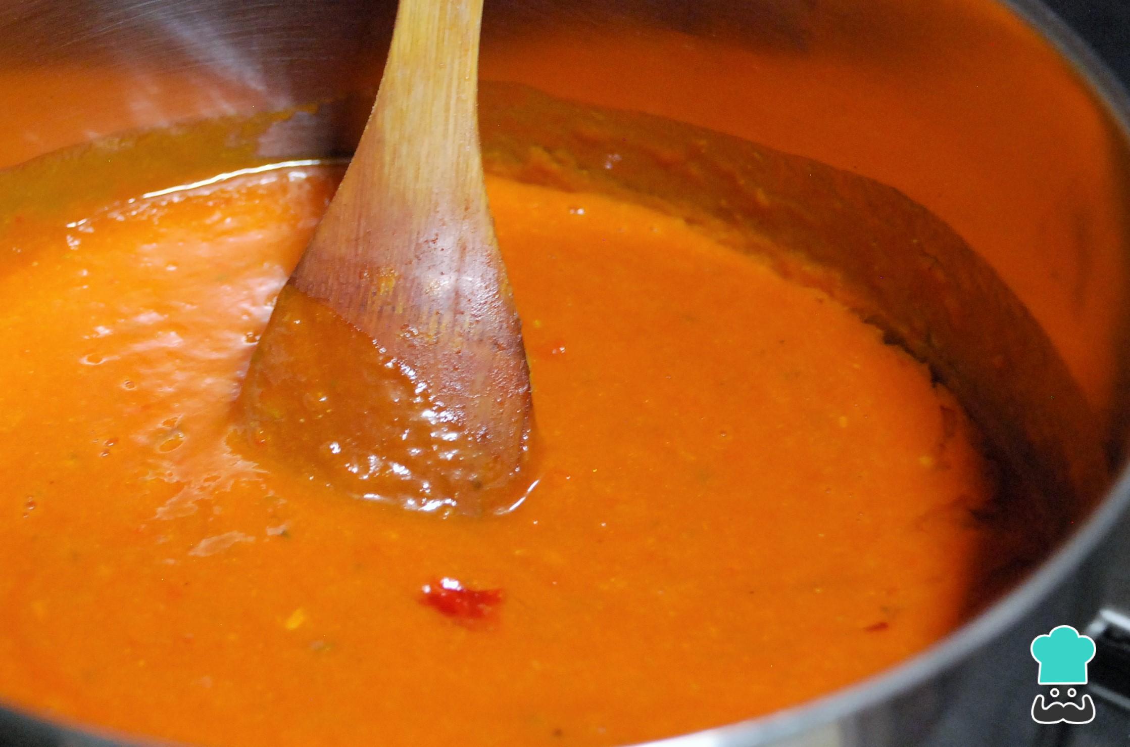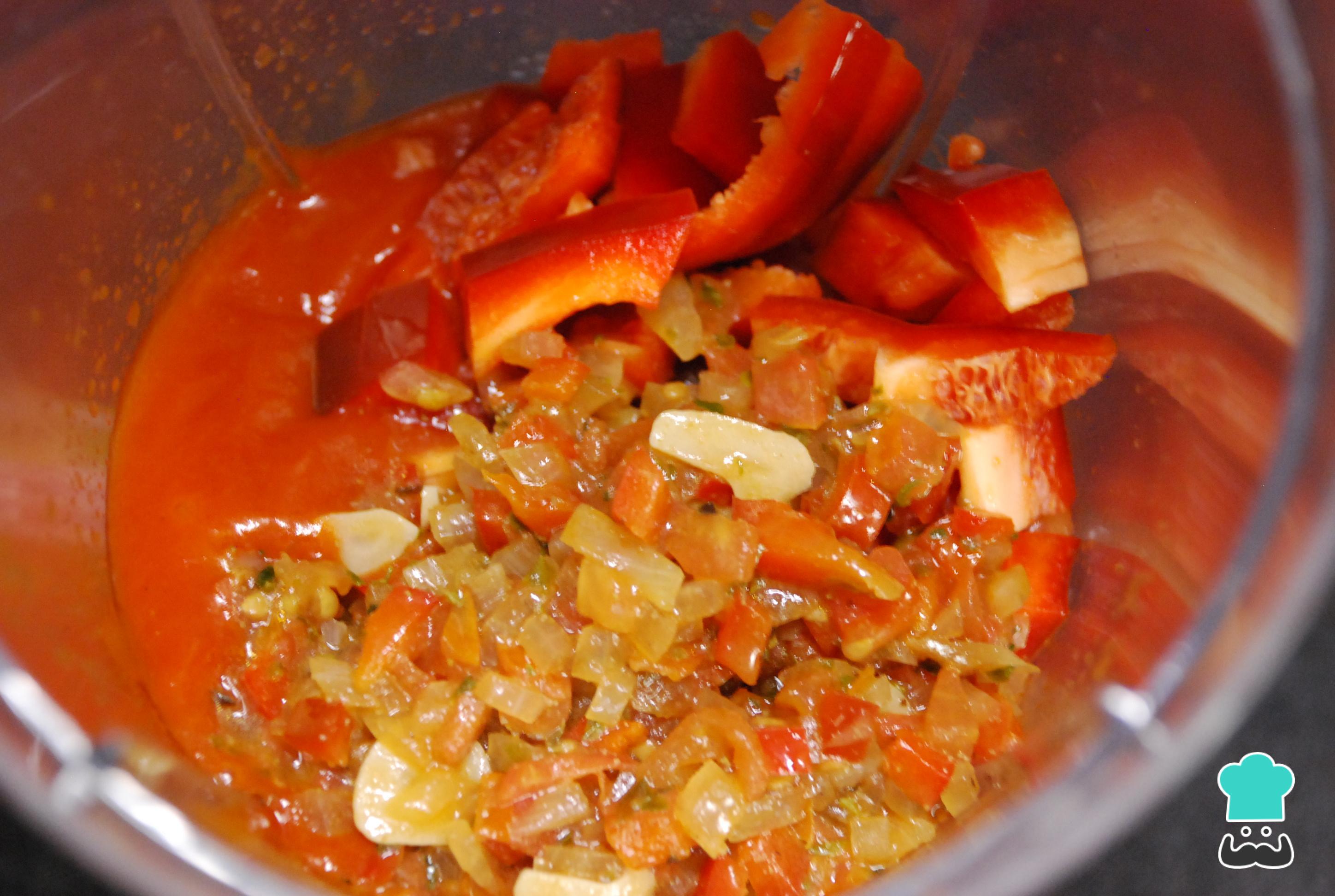 Quando todos esses legumes estiverem macios, deixe um pouco na frigideira para cozinhar a carne e bata o restante no liquidificador com o pimento reservado. Assim conseguimos um molho de tomate bem homogêneo.