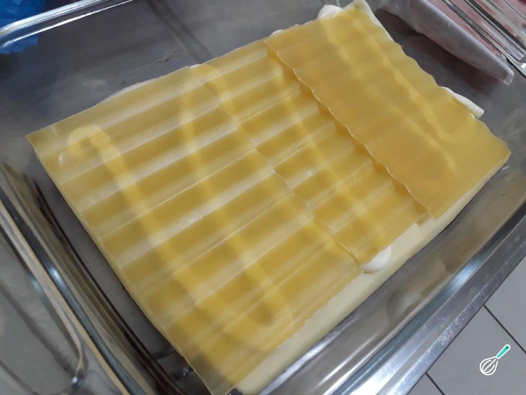 Termine de rechear a lasanha caseira com o requeijão cremoso.