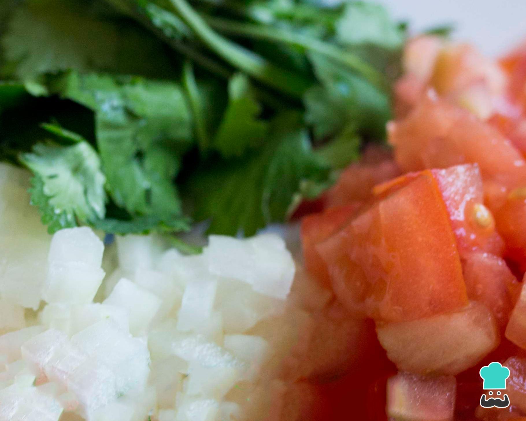 Coloque os temperos: o tomate, a cebola e o cheiro verde, todos picados finamente ou passados no processador. Mexa e deixe cozinhar por 2 ou 3 minutos.