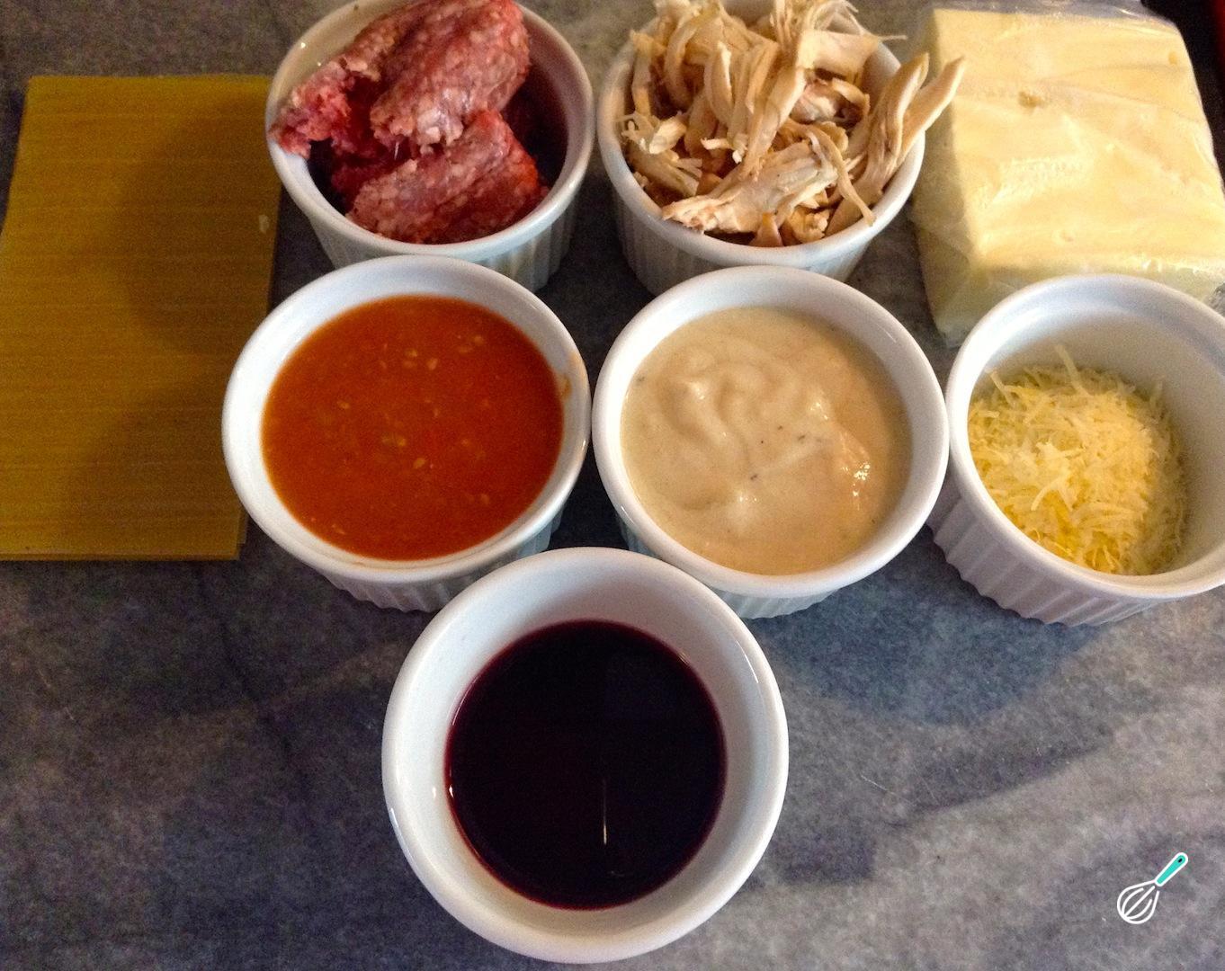 Nosso primeiro passo para preparar a receita de lasanha de frango e carne moída é preparar os ingredientes.