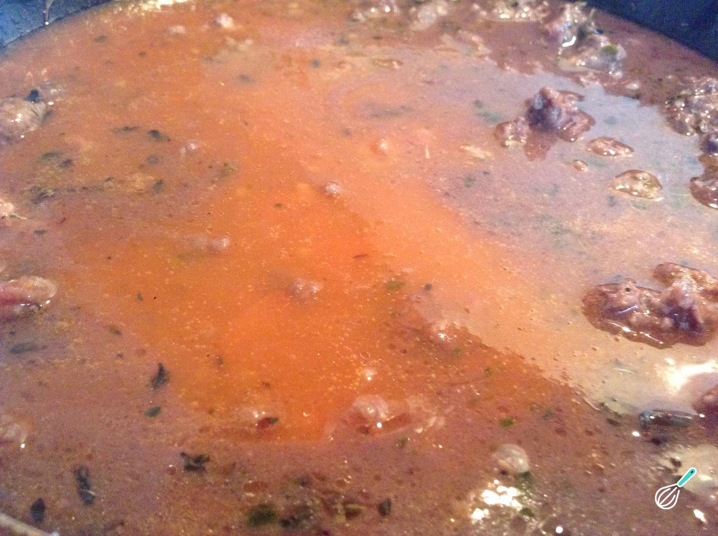 Cubra com o molho Napolitano e deixe cozinhar por 20 minutos. Verá que a combinação entre o vinho tinto e o molho Napolitano vai dar um sabor muito requintado.