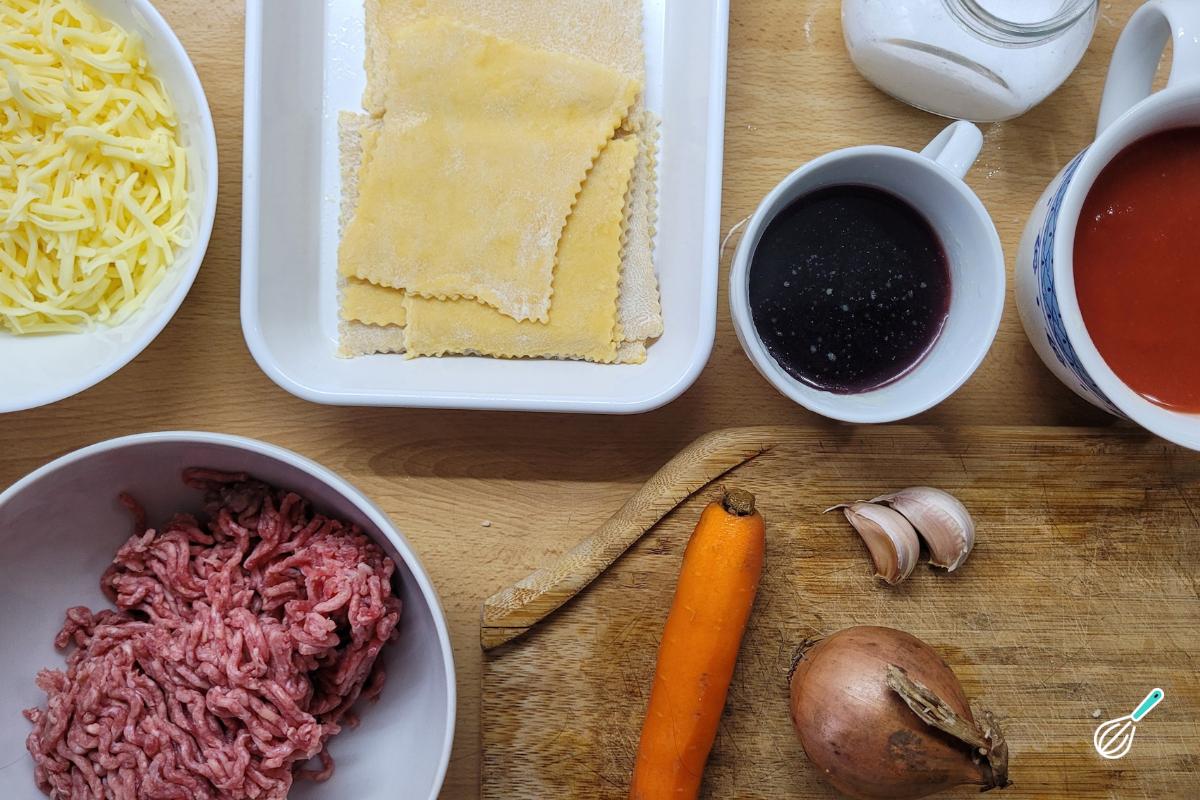 Separe os ingredientes para fazer sua lasanha na air fryer. Aqui usei uma massa fresca caseira, você encontra facilmente no mercado massa fresca para lasanha. Dê preferência a usar a massa fresca porque ela cozinha mais rápido no forno e não precisa de pré-cozimento. Caso esteja usando a massa seca, o ideal é pré-cozinhar antes da montagem para não correr o risco da massa secar no forno.