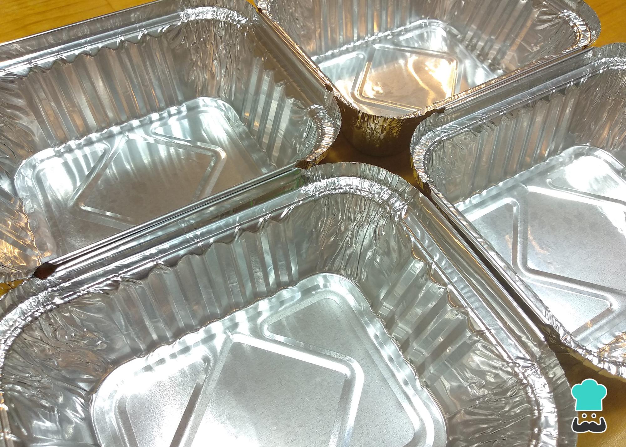 Por último, cozinhe a massa de lasanha de acordo com as instruções da embalagem. No entanto, como a lasanha será cozinhada diretamente nas marmitas de alumínio (essas marmitas podem ir no forno, sem a tampa respetiva), antes de cozinhar a massa de lasanha quebre-a no tamanho das marmitas.