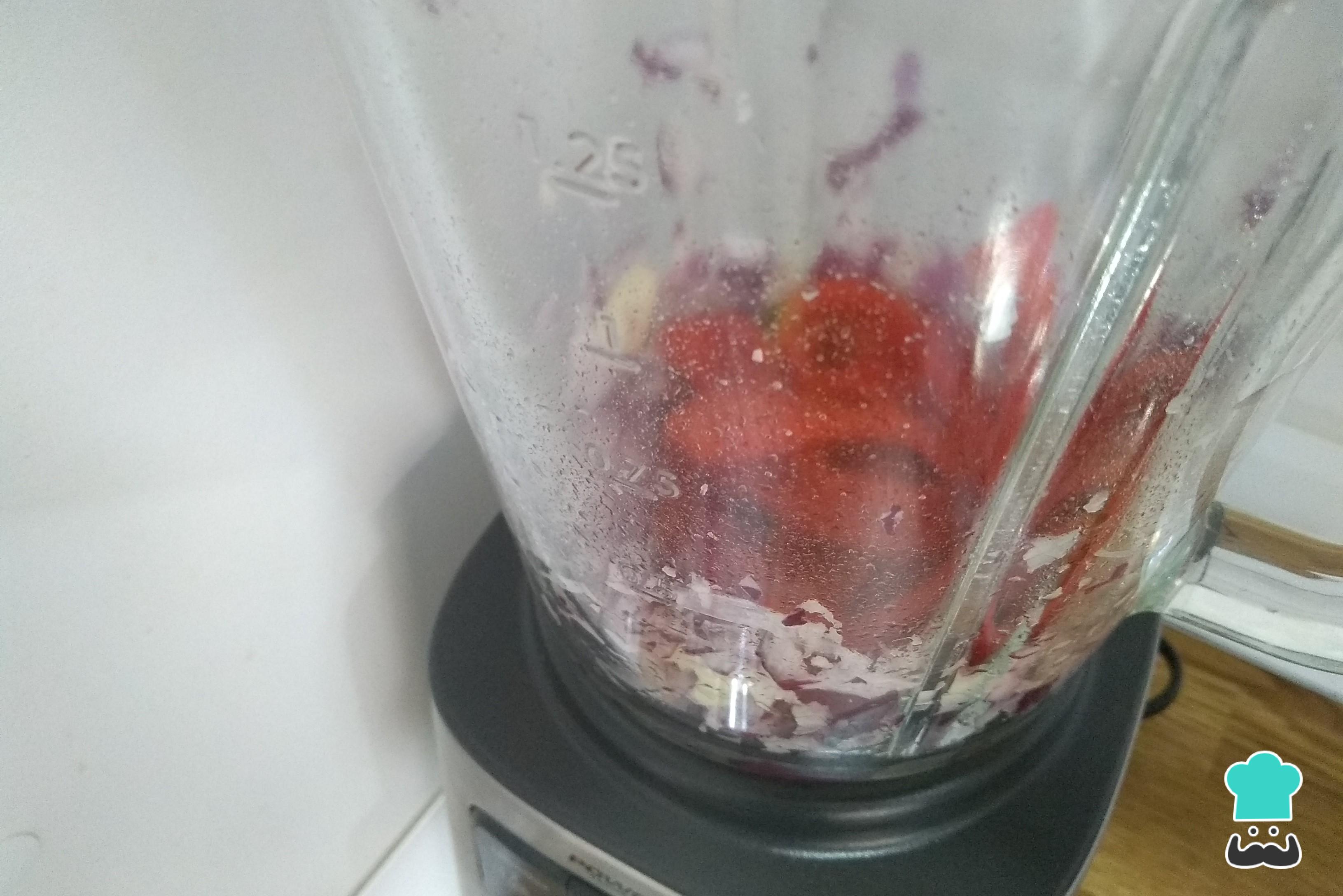 No liquidificador bata a cebola descascada com o alho também descascado e o pimentão sem sementes. O ideal é obter uma pasta o mais lisa possível.