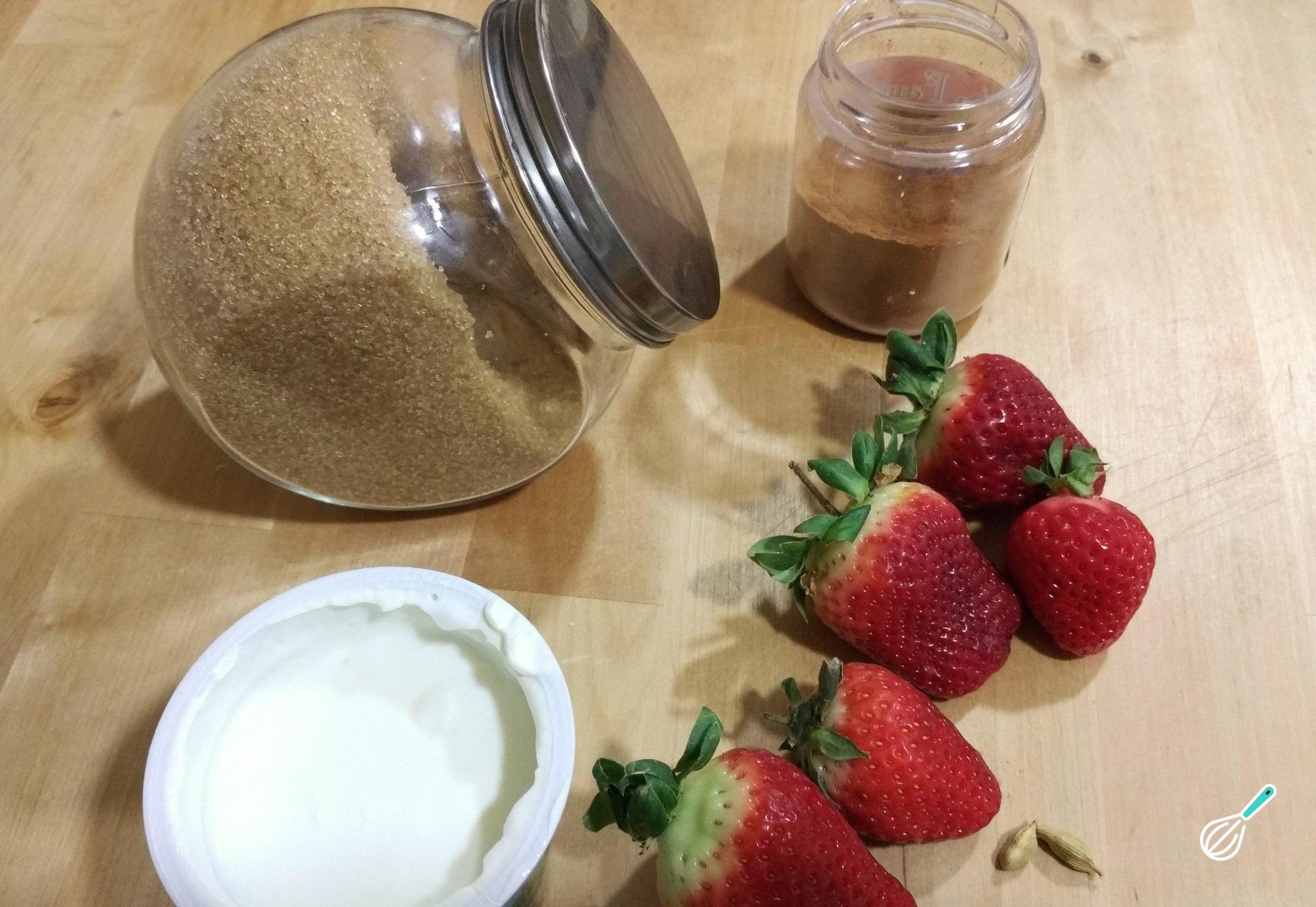 Reúna todos os ingredientes para preparar o lassi de morango.