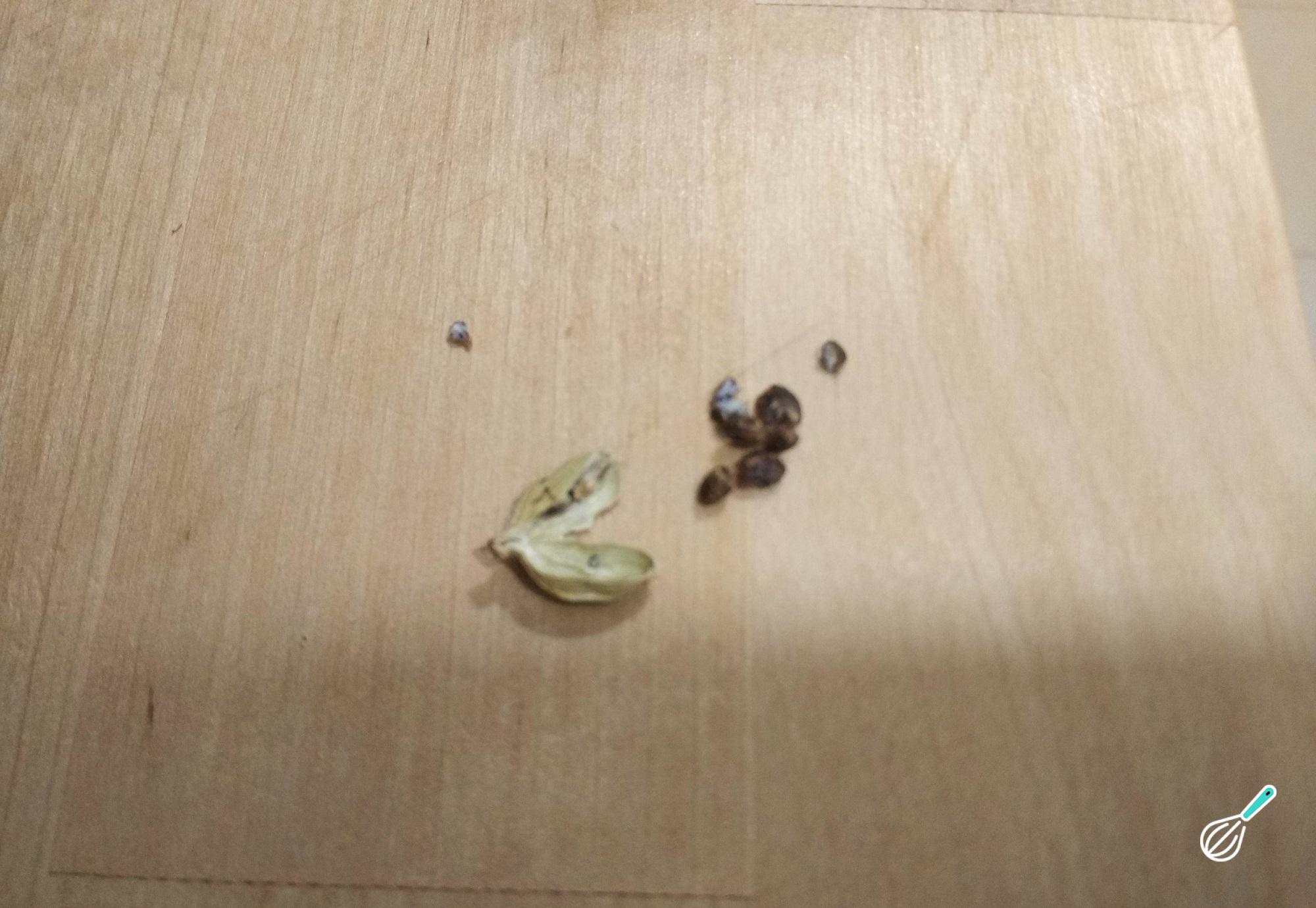 Esmague o cardamomo, retire as sementes e coloque as sementes no copo do liquidificador, junto com os morangos.