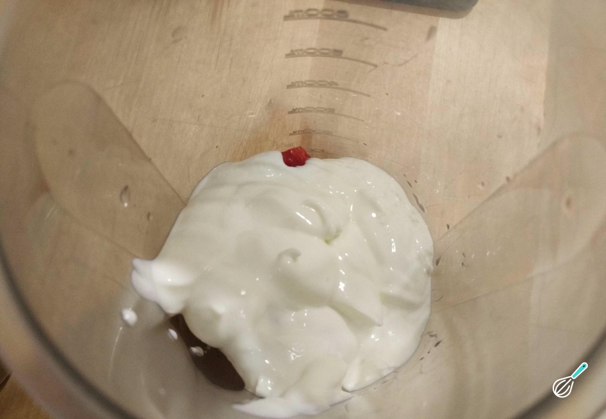Adicione o iogurte. Para esta receita usamos um iogurte cremoso, mas você pode usar líquido ou mais sólido.