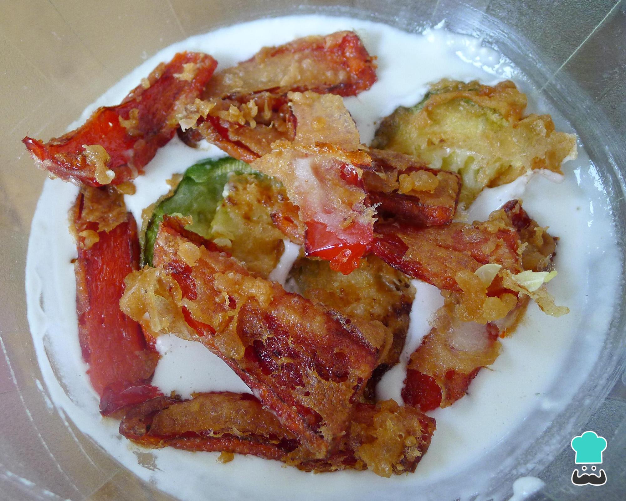 Depois de fritar você observará que os legumes não estão completamente empanados. Por isso volte a envolvê-los no polme e frite novamente. Faça isso uma vez ou duas, até os legumes ficarem bem crocantes.