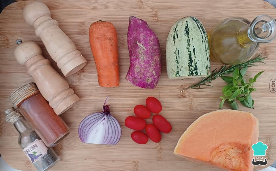 Separe todos os ingredientes necessários para o preparo dos legumes na airfryer.