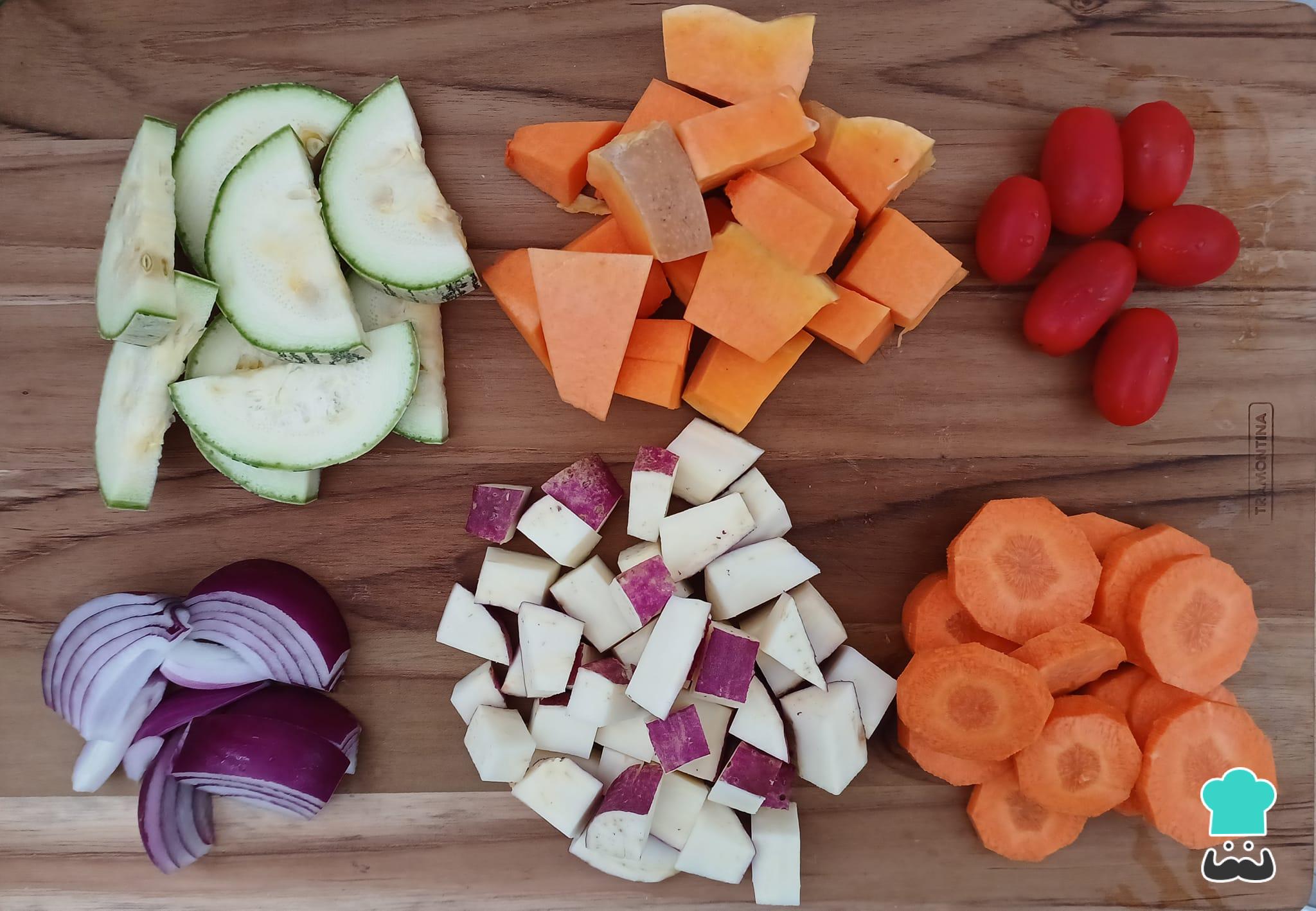 Aqui, nós sugerimos estes legumes, mas você poderá variar e utilizar o que tiver na sua geladeira, evitando assim o desperdício de alimentos.