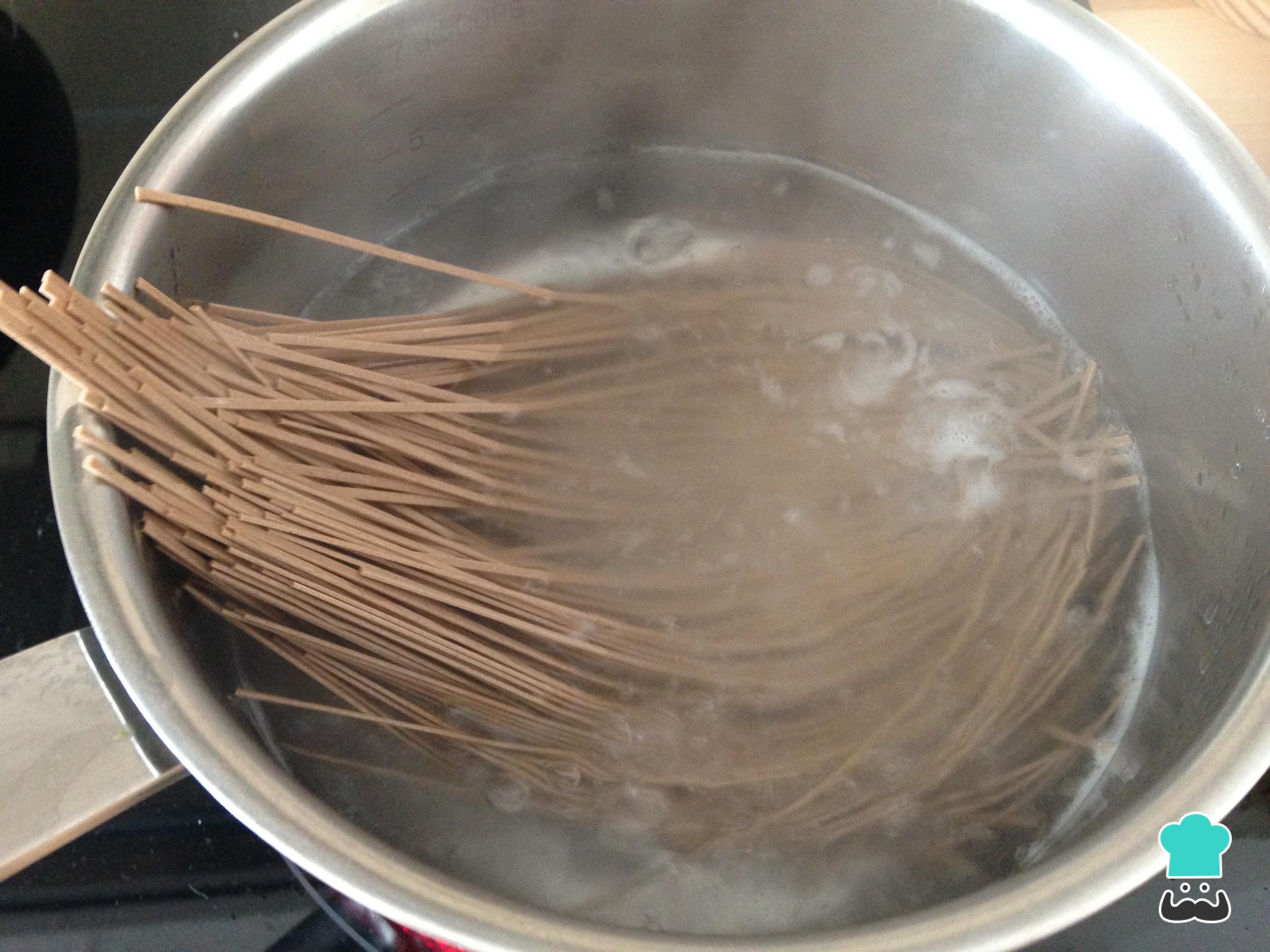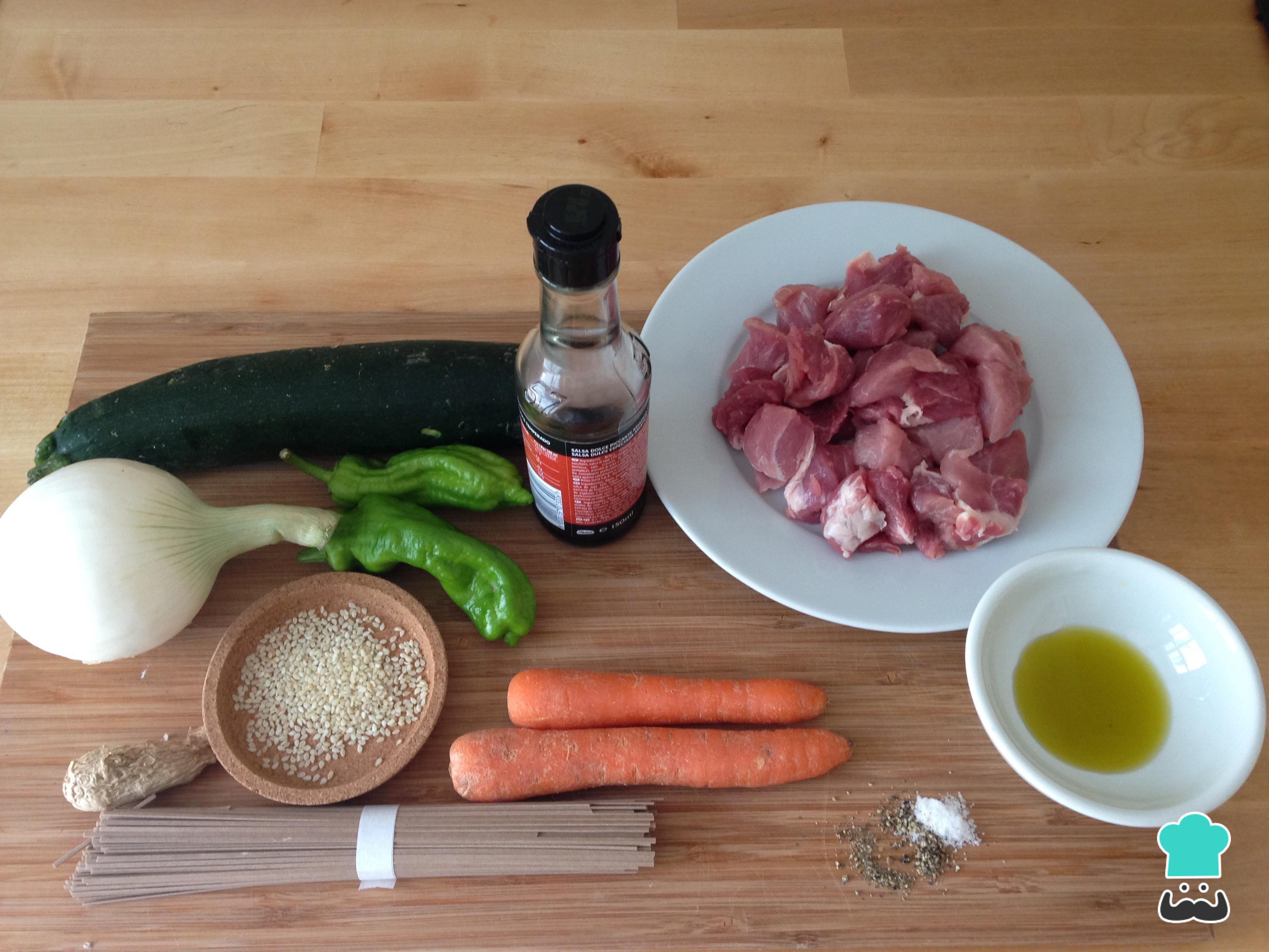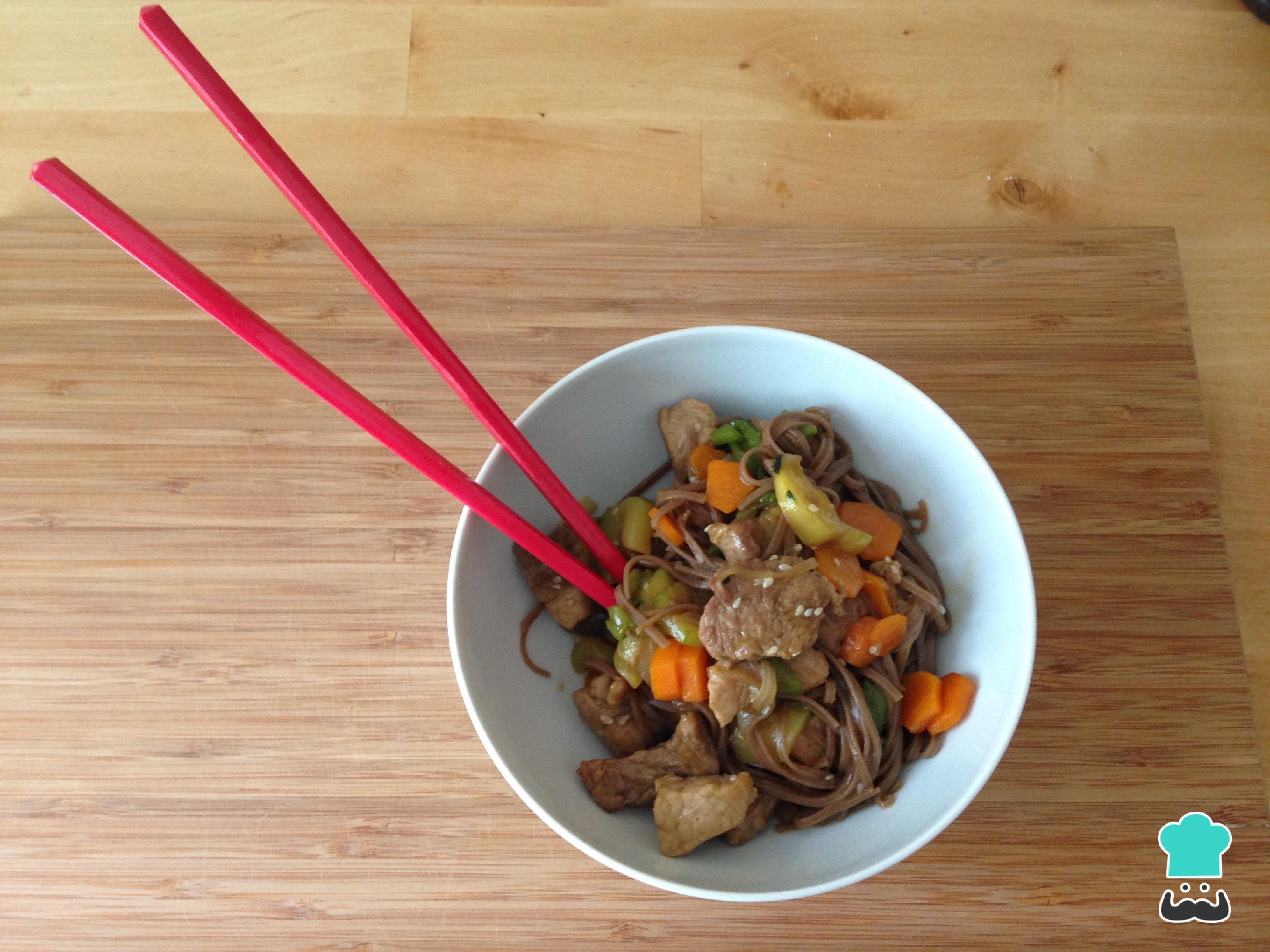 Para acompanhar este salteado de carne de porco, cozinhe o macarrão chinês ou noodles em água fervente abundante.