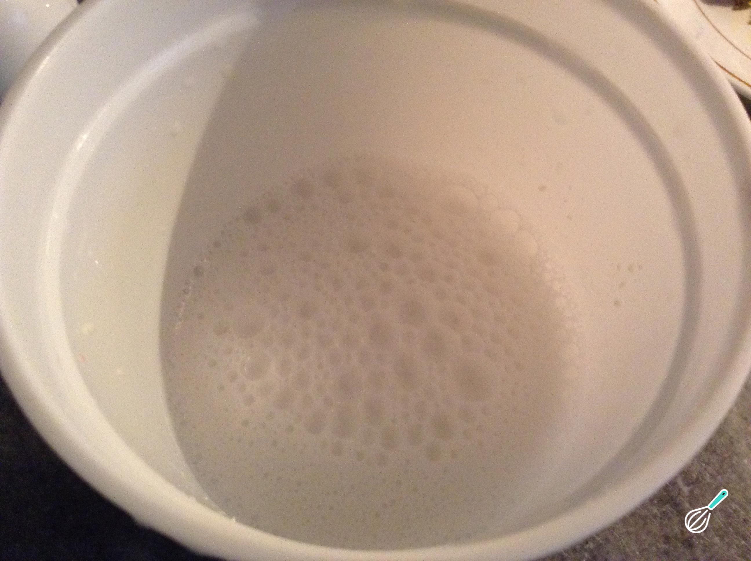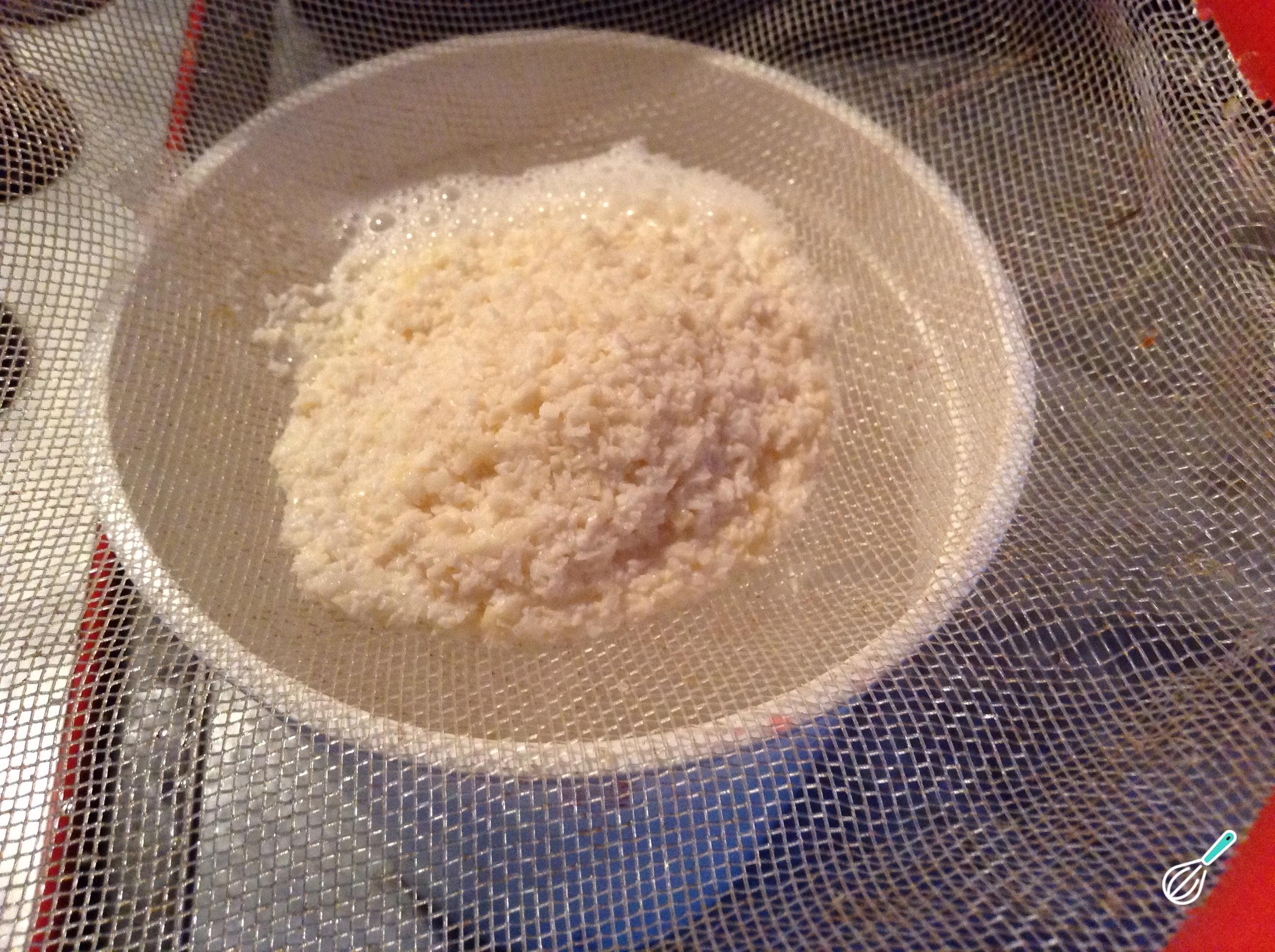 Com a ajuda de uma peneira, coe o leite para remover os pedaços de avelã que restaram.