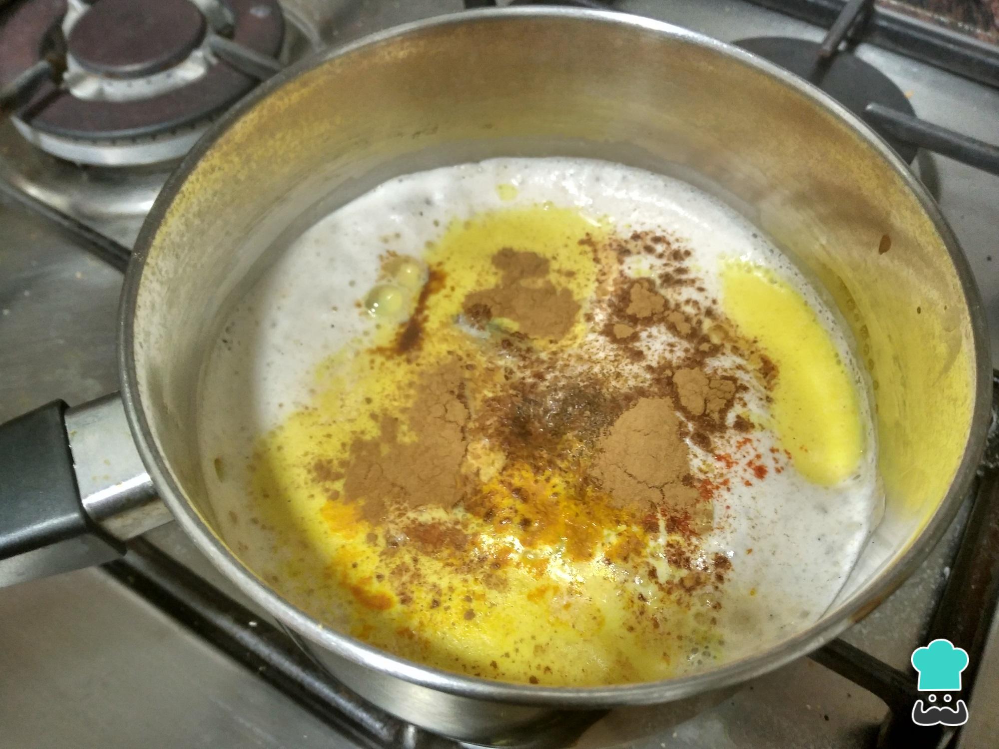 No momento de servir seu leite dourado para emagrecer polvilhe um pouco de canela em pó e está pronto! Esta é uma receita ayurvédica para tomar ao café da manhã, ao lanche ou antes de dormir, sobretudo em dias frios, com um sabor muito aromático e reconfortante.