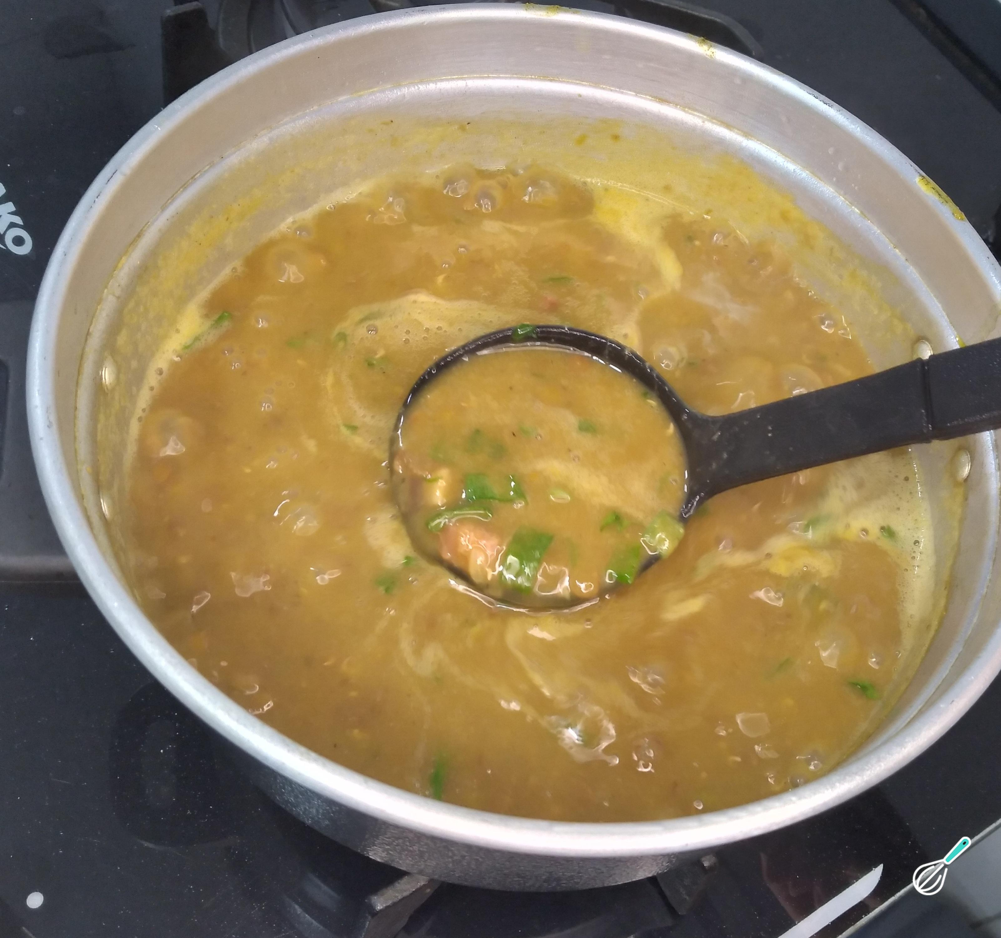 Depois disso, acrescente as lentilhas já cozidas e o cheiro verde.