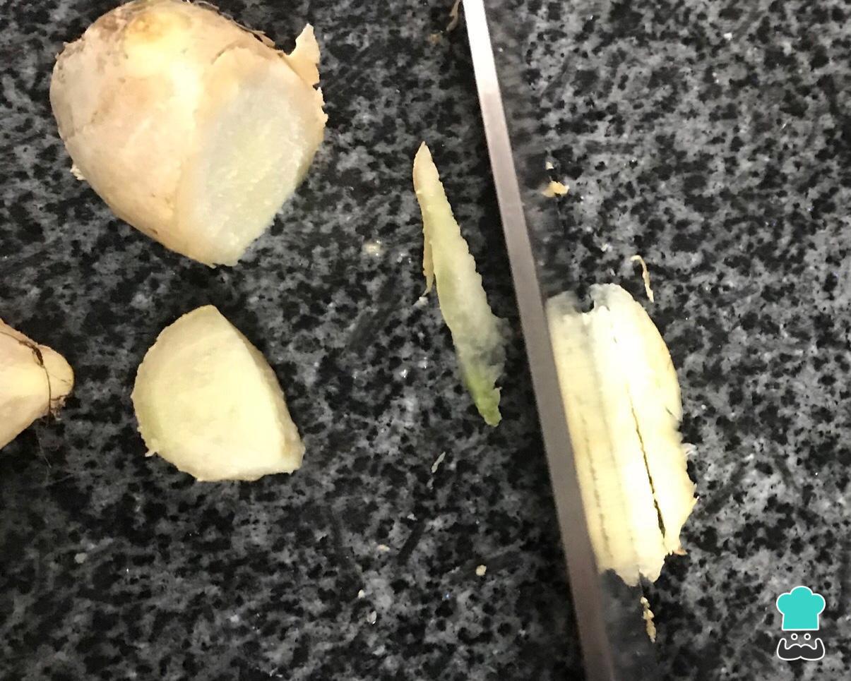 Dica: A quantidade de gengibre é a gosto, nós recomendamos usar uma rodela com espessura de 1-2 dedos.