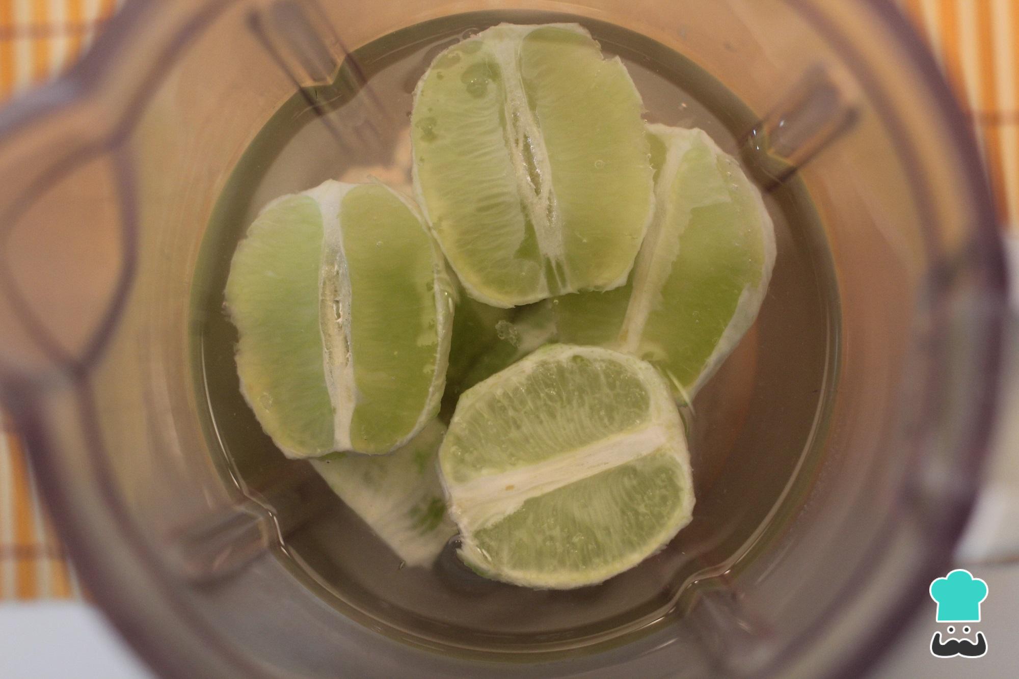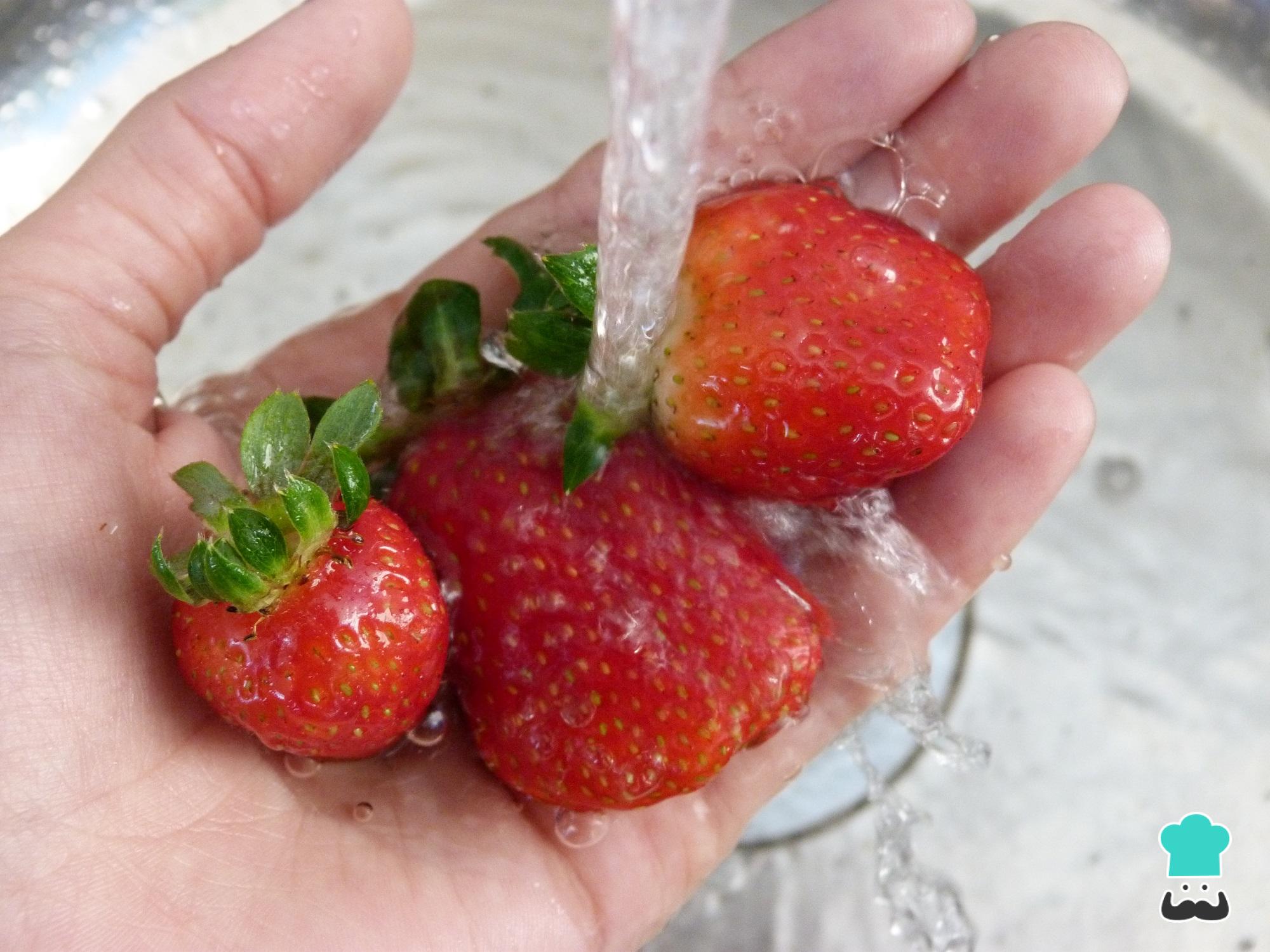 Para preparar esta receita de limonada sem açúcar comece por lavar os limões e os morangos e cortar ambos em pedaços (o limão vai junto com a casca mesmo, mas você deverá tirar a rama dos morangos).